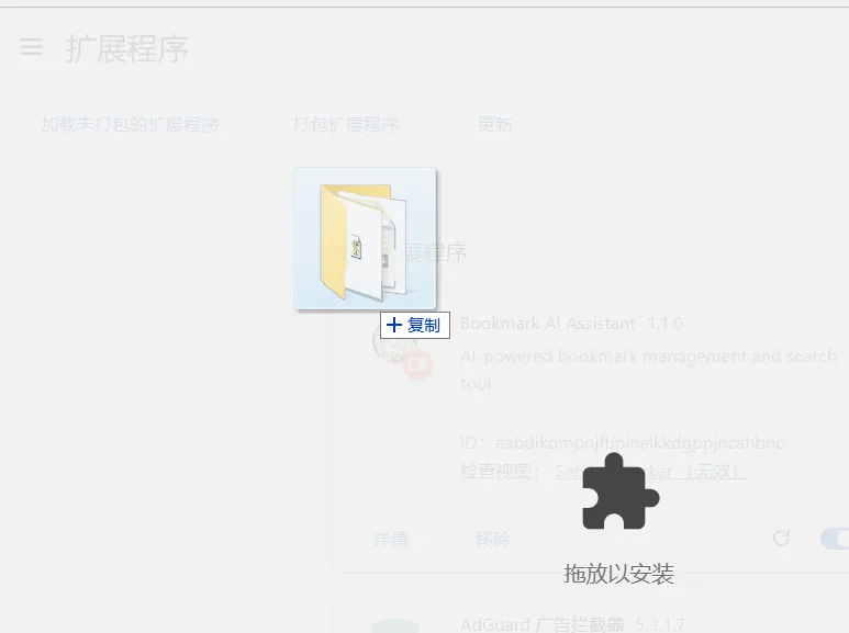 5. (可选)固定至浏览器工具栏,一键唤起更便捷,不过文件夹得放好,文件夹如果误删的话插件也会随之被删除了。 -