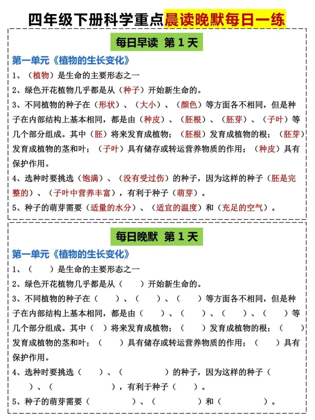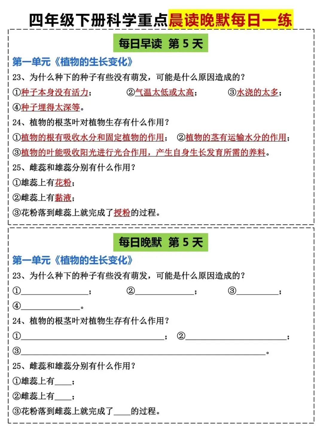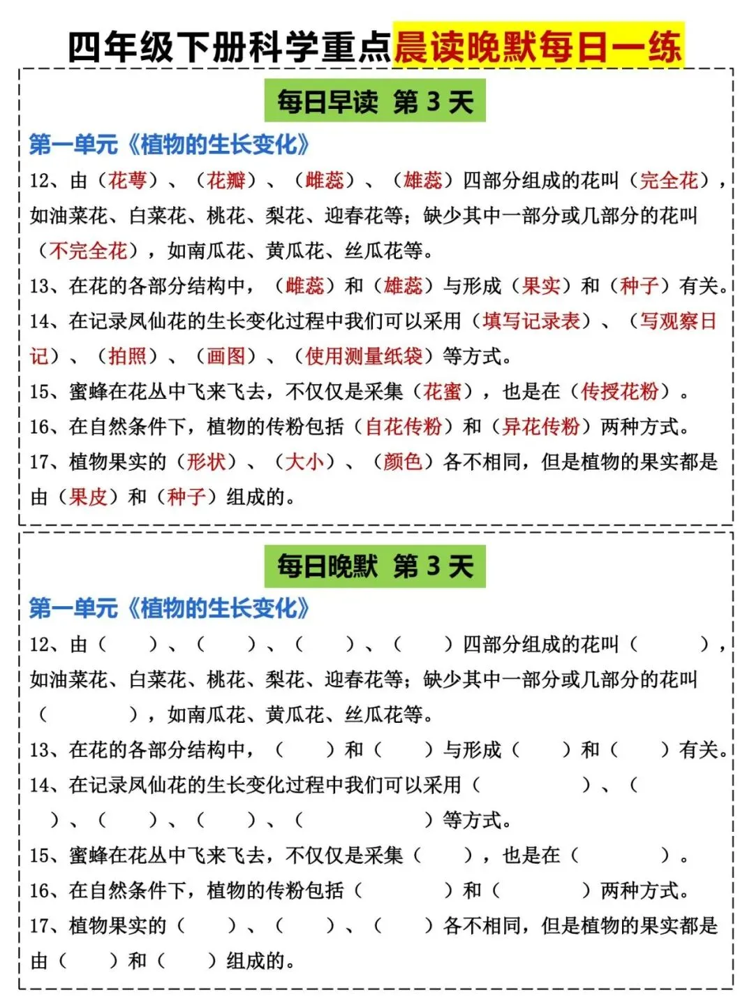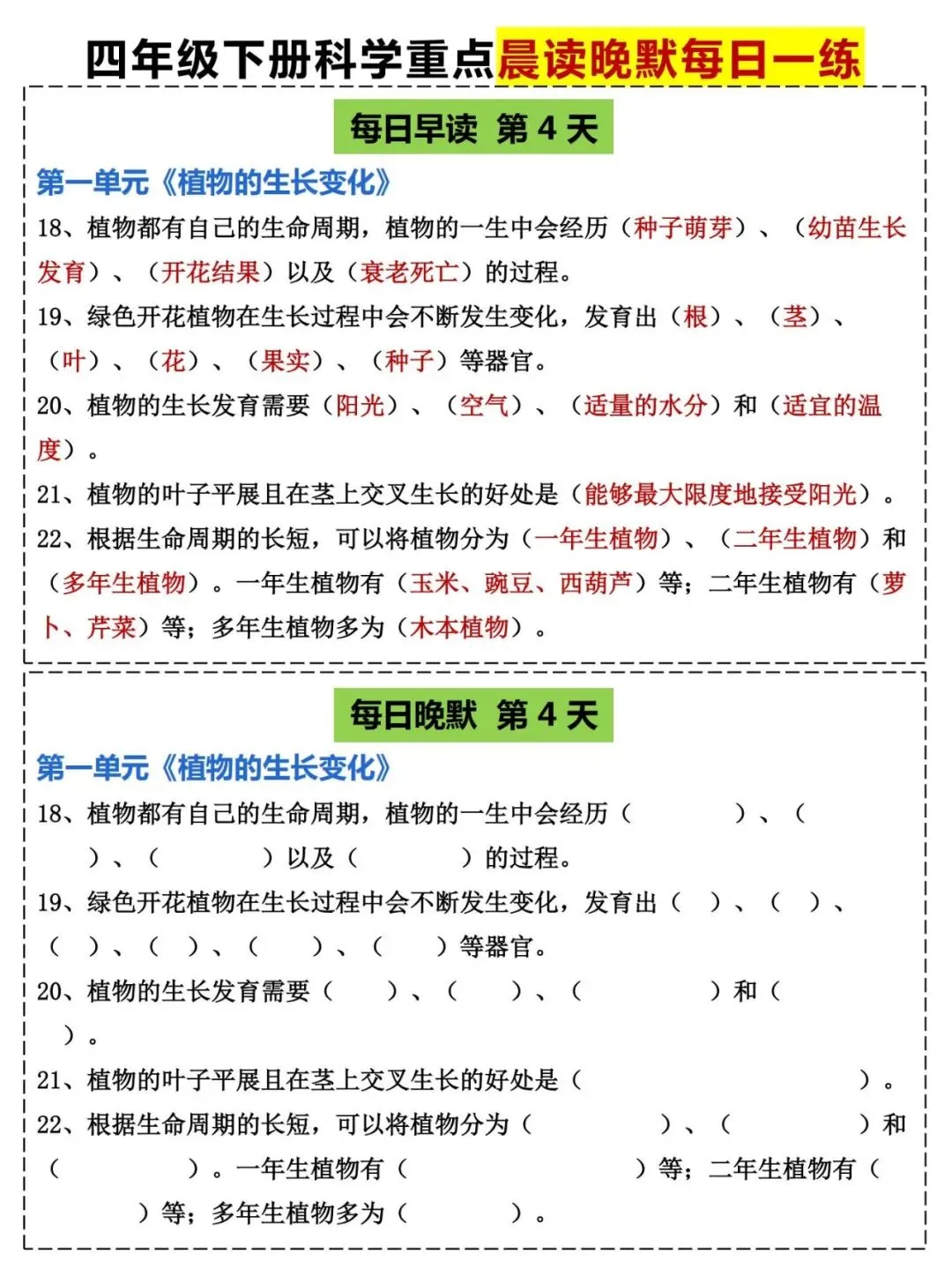 四年级(教科版)科学下册《晨读晚默小纸条》共20页,提分必备 · PDF可下载~