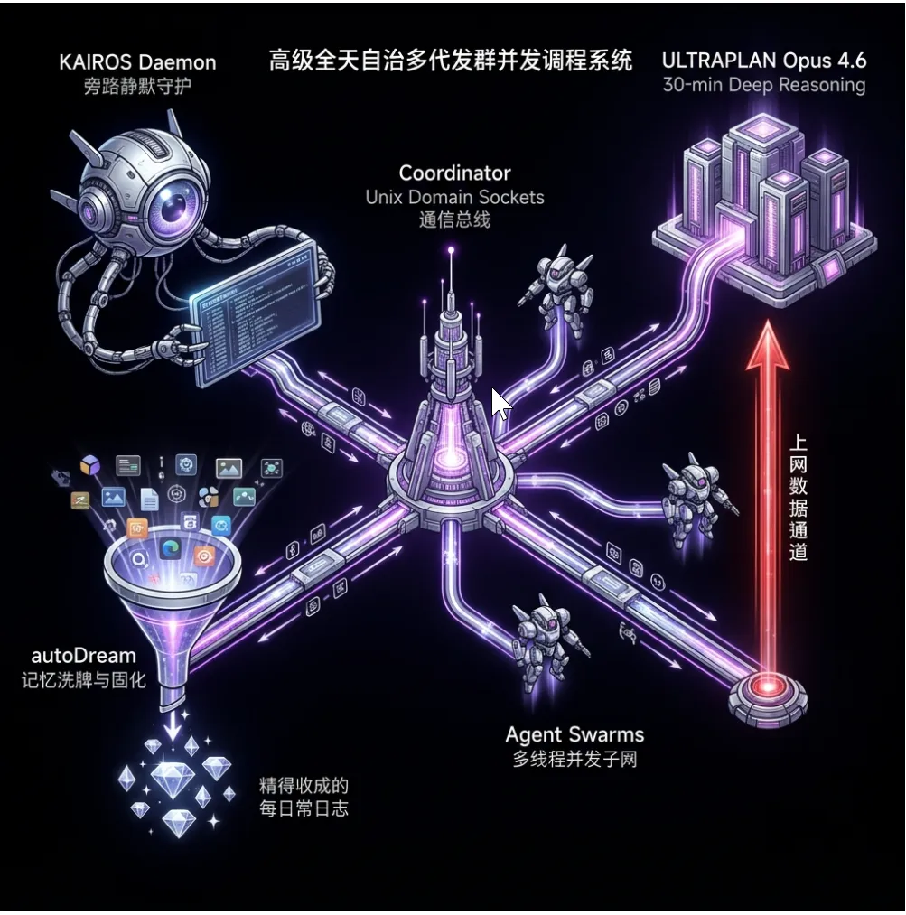 KAIROS:全天候自治守护进程开关,隔离所有后台日志合并与记忆洗牌逻辑(后文会详述,极其震撼)。 -