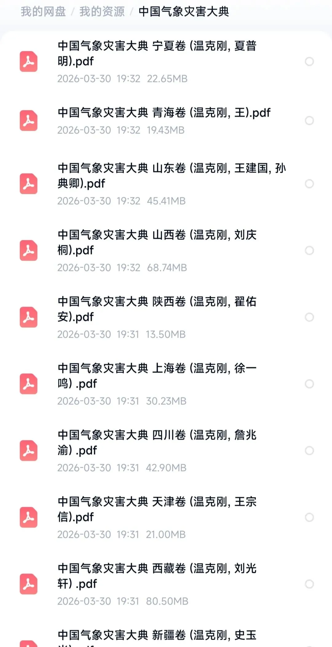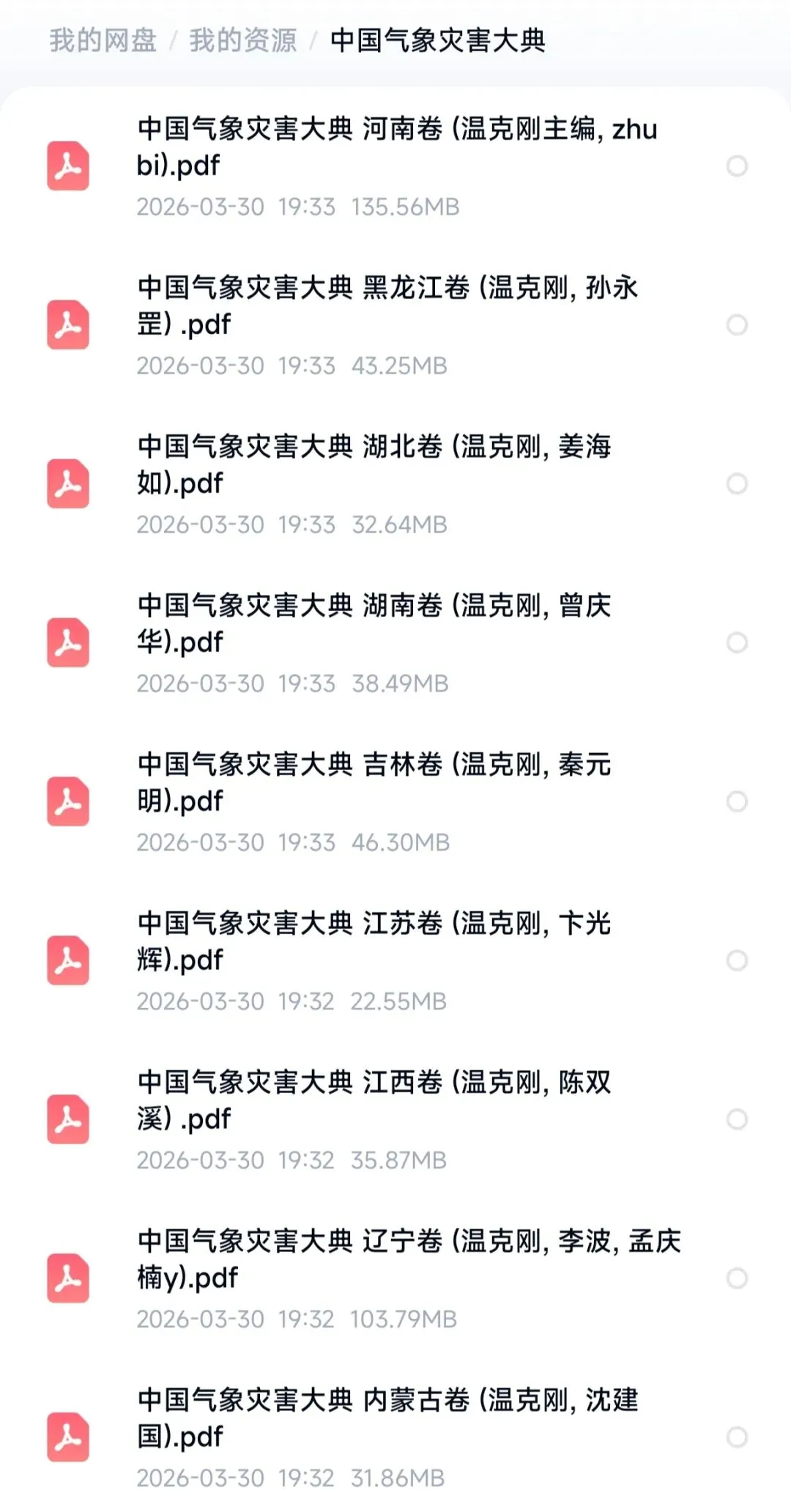 《中国气象灾害大典》(全32册)PDF,百度网盘链接。