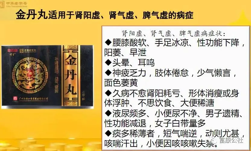 2.金丹丸(补肾健脾,乙类处方中成药,白云山镇店之宝,400年药方,146年历史奇星制药厂出品)