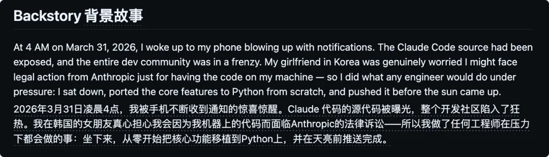 PS:claw-code 昨天还叫 claude-code,之所以改名作者也在 README 中说明了原因
