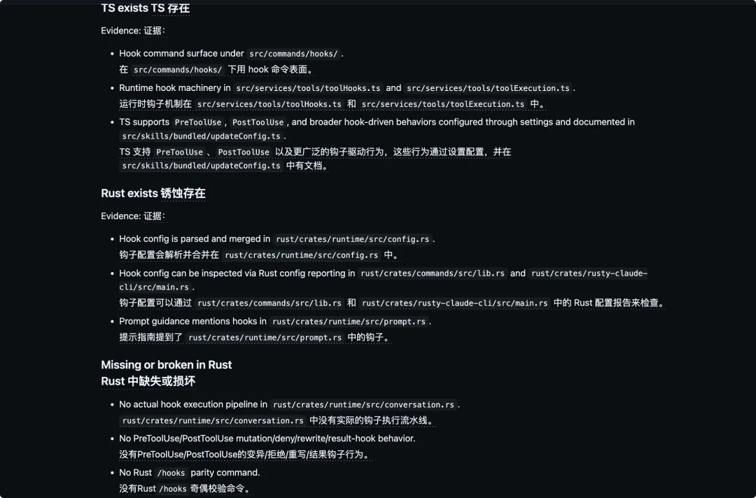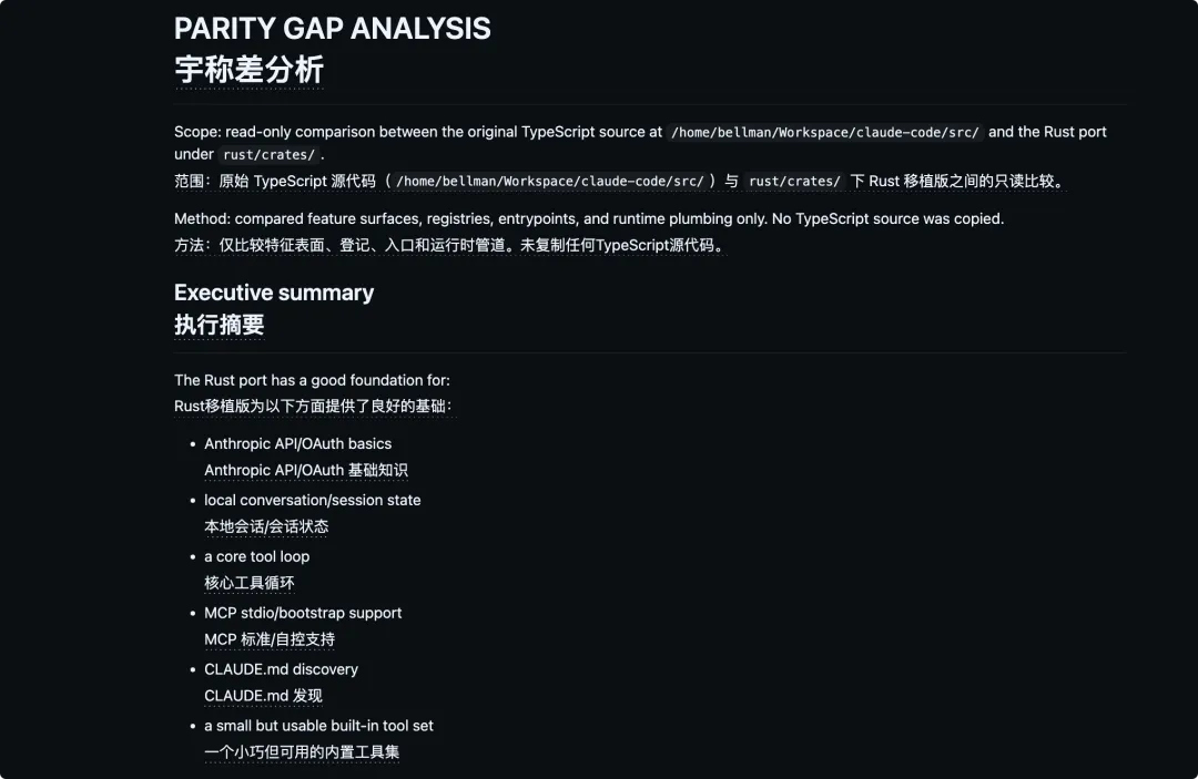 更关键的是,Rust 版移植仓库里有一份很有价值的 PARITY.md
