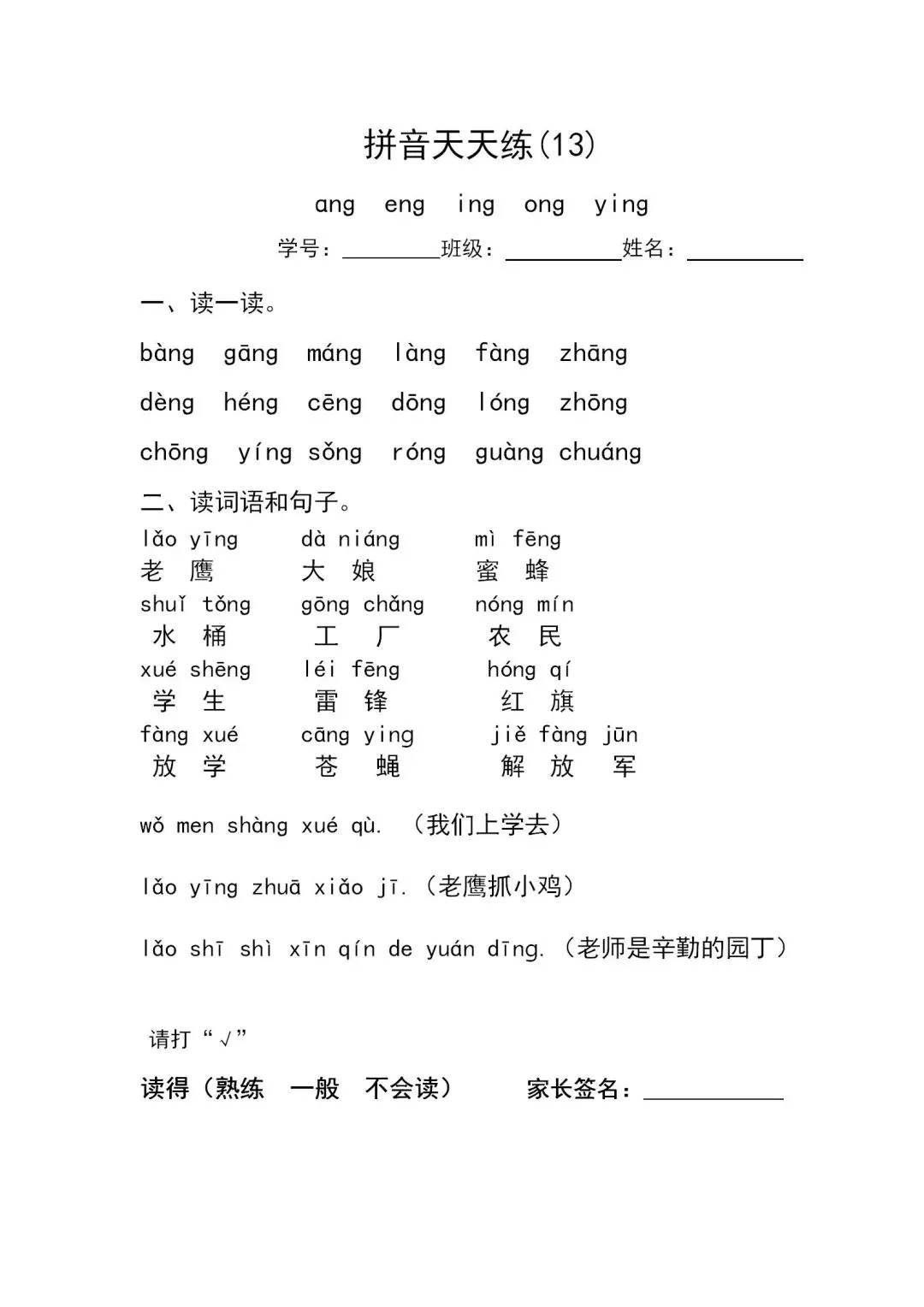 幼小衔接 | 汉语拼音14级过级卡,可打印