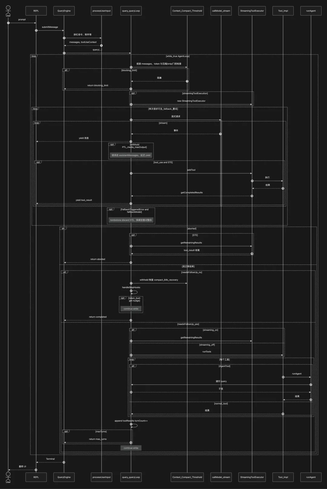 query.ts ← 核心循环层(真正的 Agent Loop)