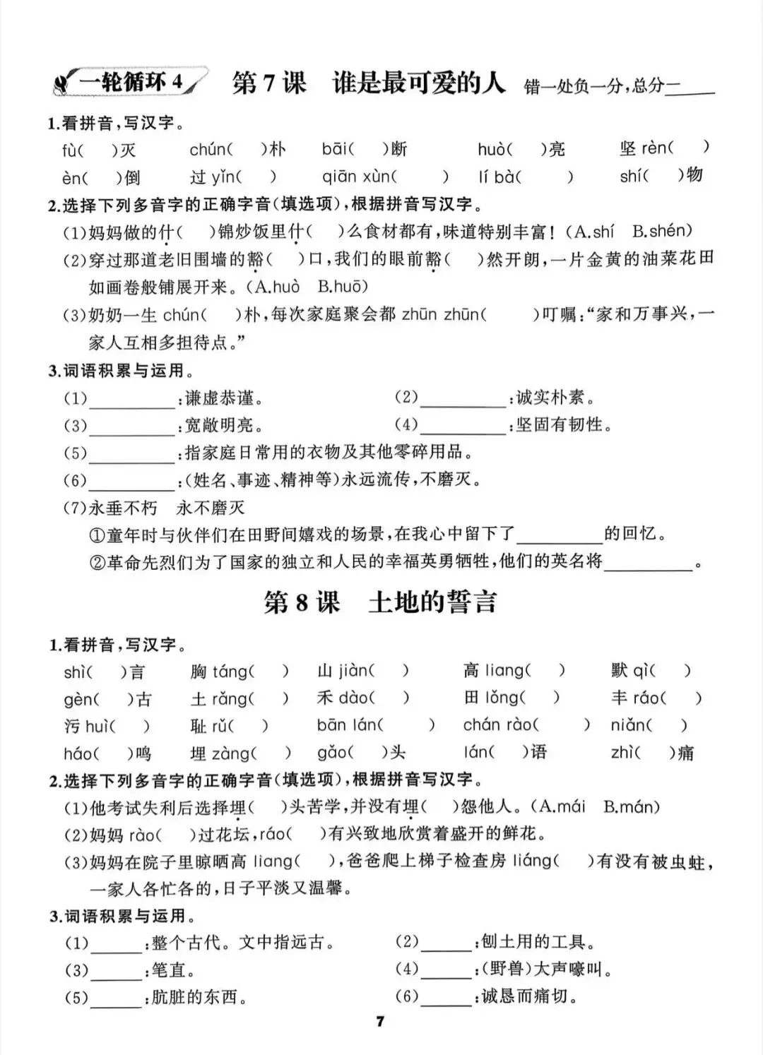 2026 语文花开 七年级下循环默写/电子版可打印 以下为部分截图,具体看完整PDF文件 (温馨提示:文末有电子版领取方式) 领取完整电子版: ①:点一点右下角的“赞”和“在看”,感谢支持! ②:点击“关注”,回复资料领取