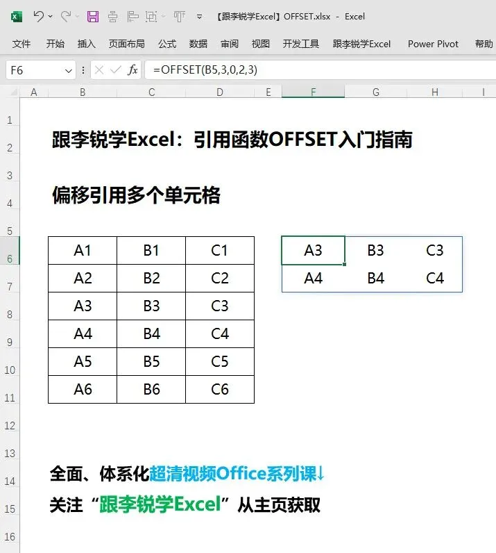 =OFFSET(基准位置,偏移行数,偏移列数,[引用高度],[引用宽度])