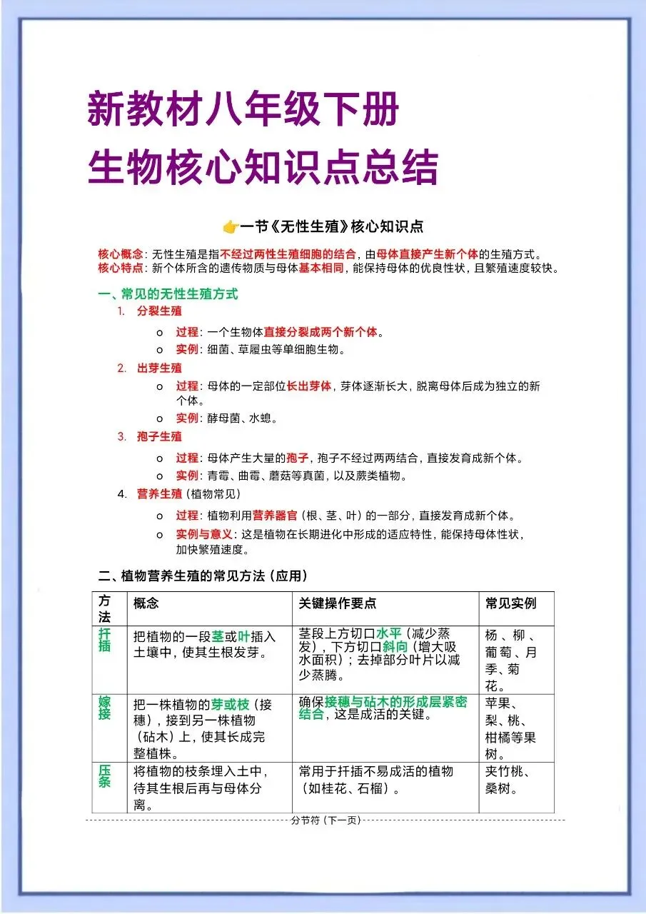 今天整理了2026 新八下生物核心考点必备汇总,电子版可打印!