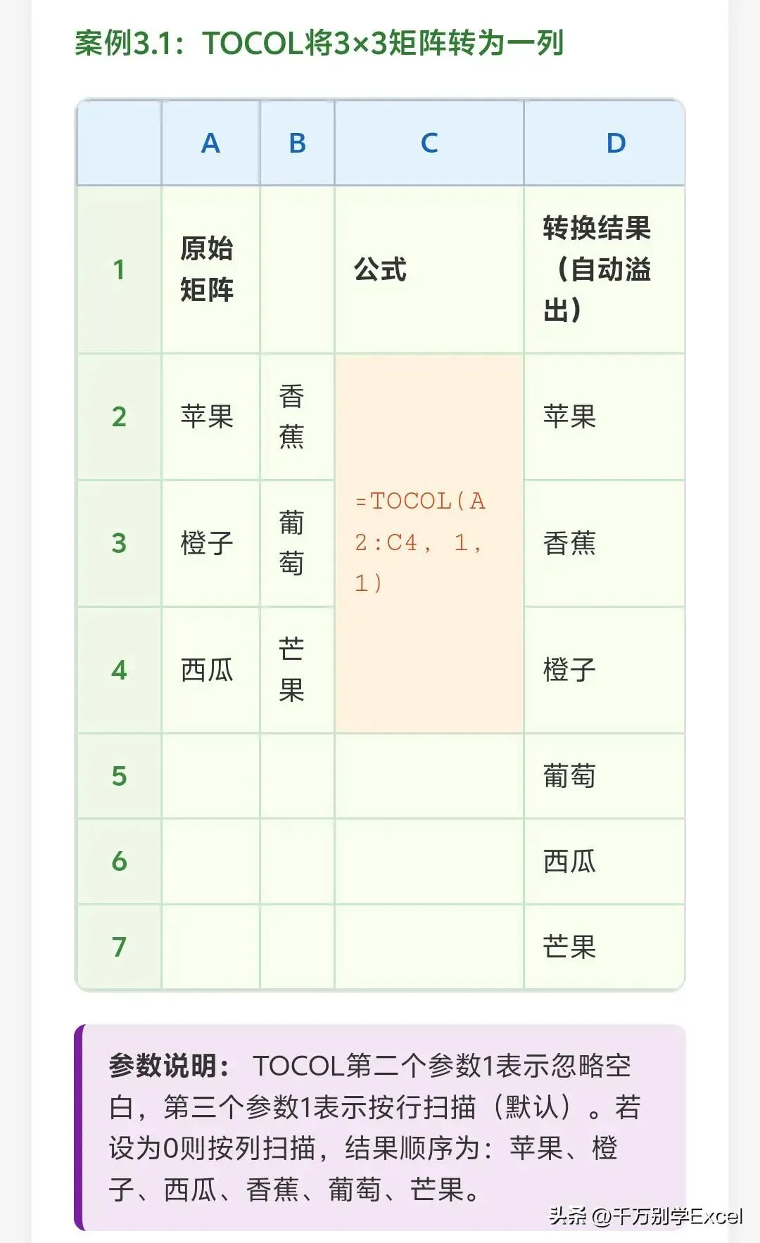 - TOCOL(数组, 忽略参数, 扫描方式)