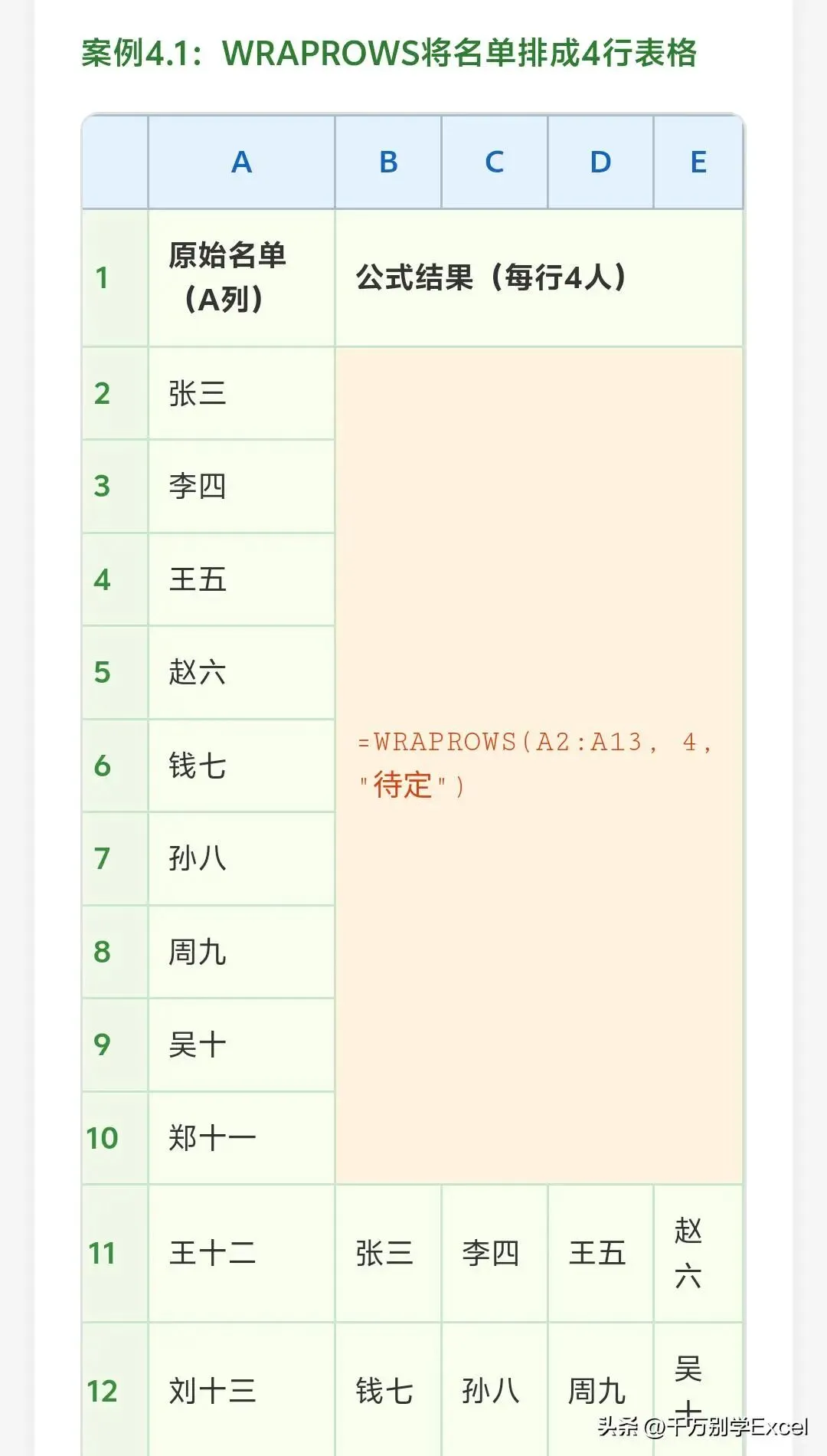 : 将一长列名单,快速排列成固定行数的签到表、座位表。 填充值:当最后一组数据不足时,用指定内容填充(如“/”、“待定”),避免#N/A错误,报表更美观。