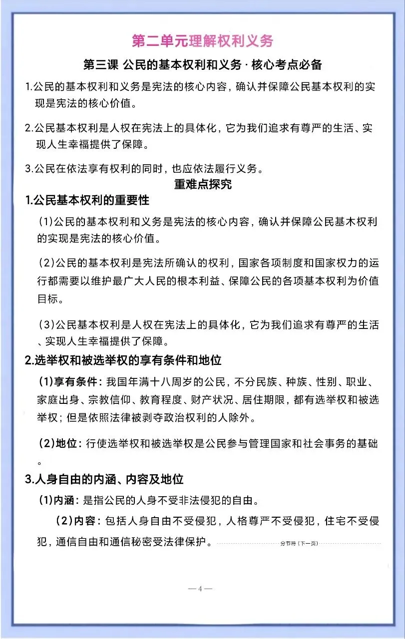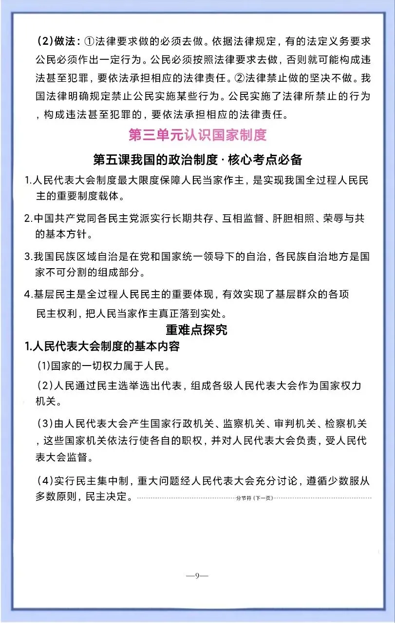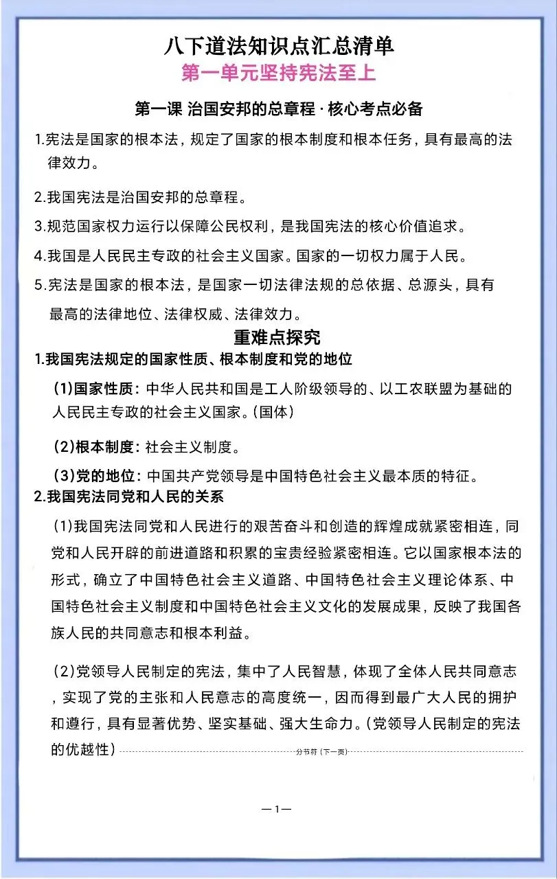 今天整理了2026 新八下道法核心考点必备汇总,电子版可打印!