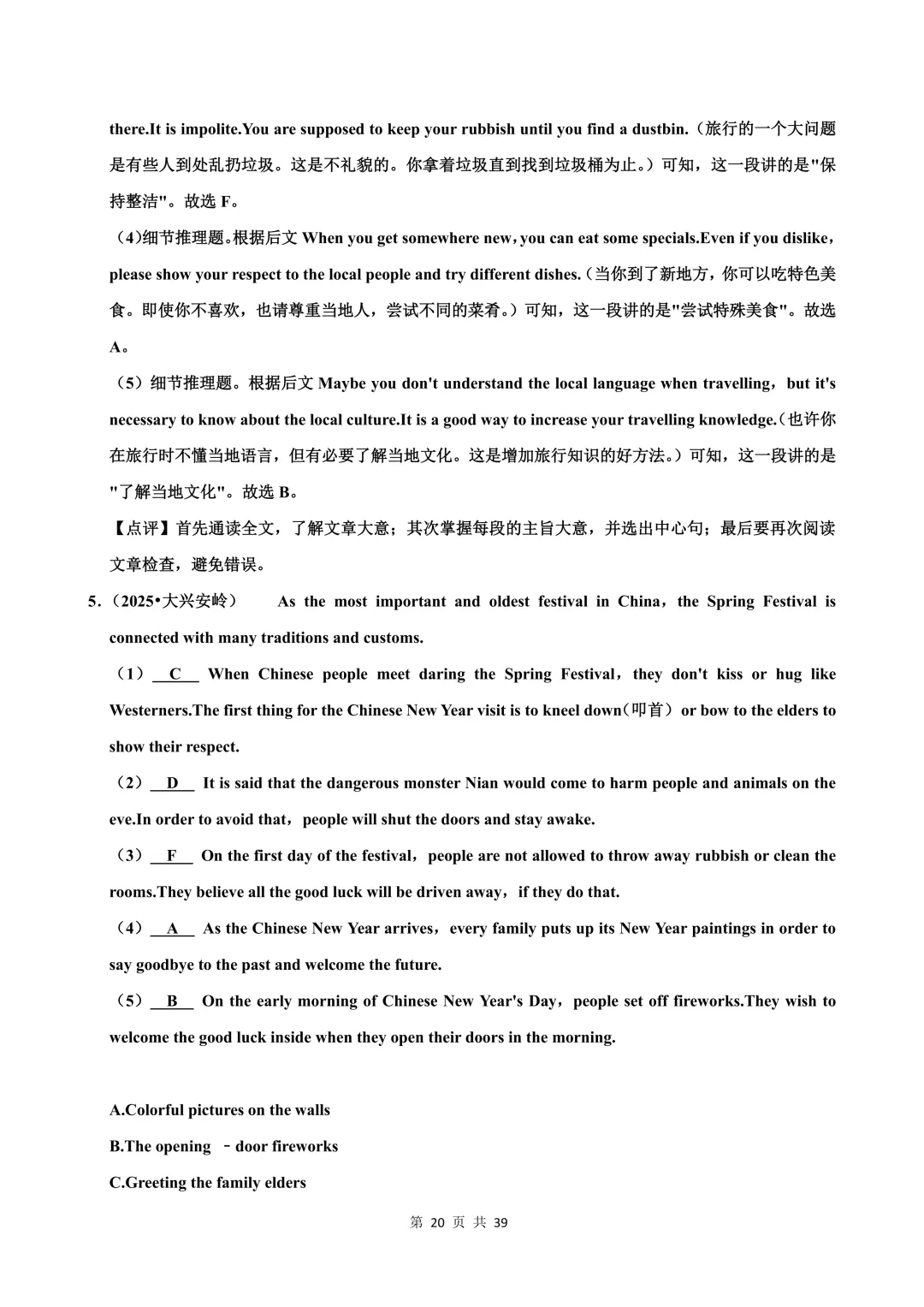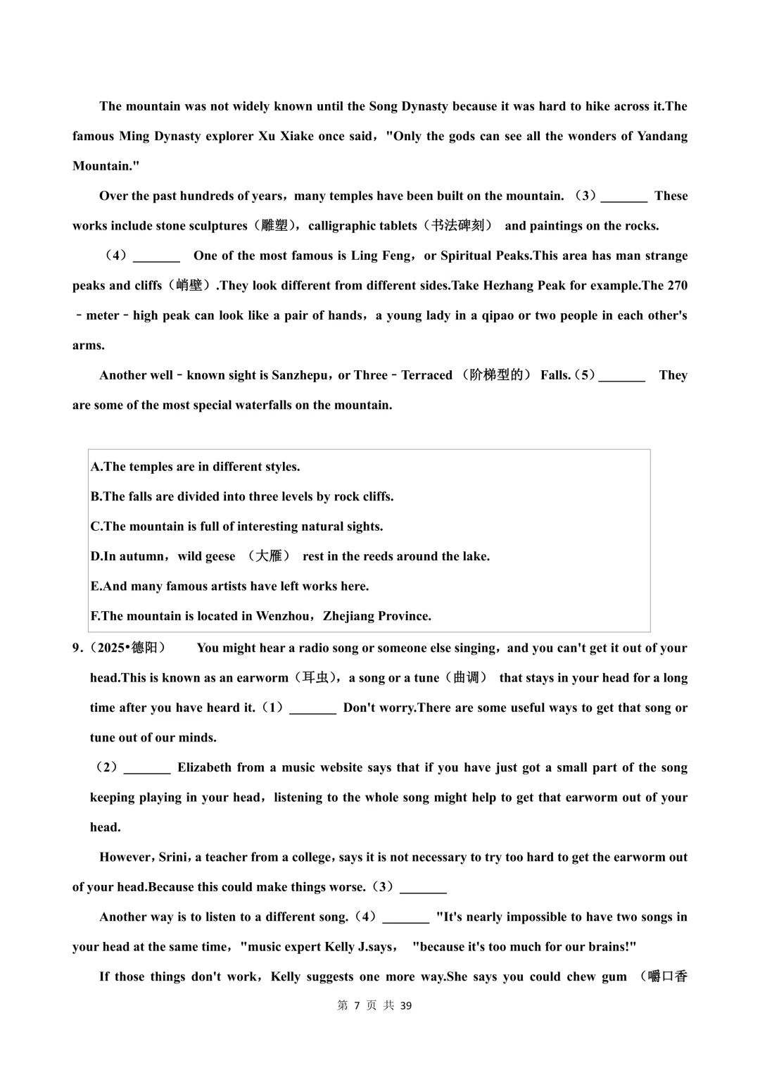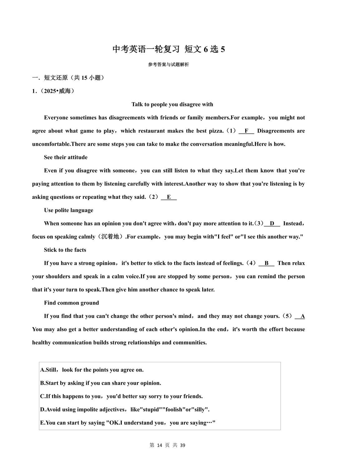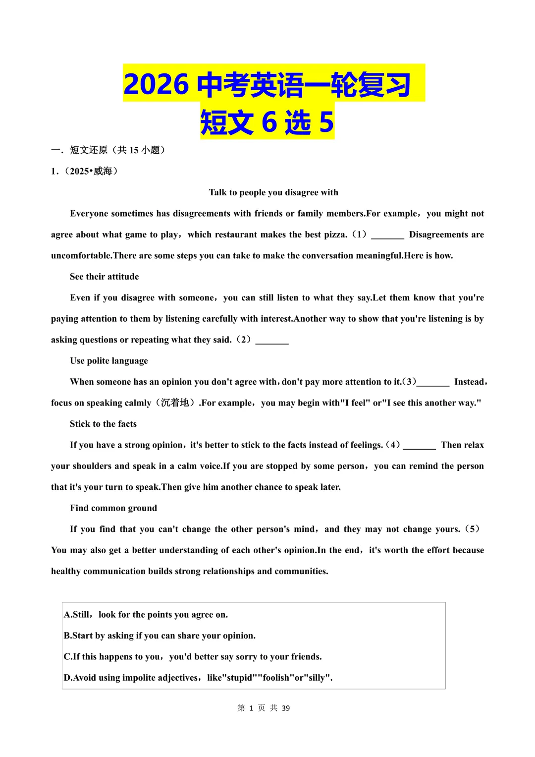 【可打印】2026年中考英语一轮复习 短文6选5(含答案解析)