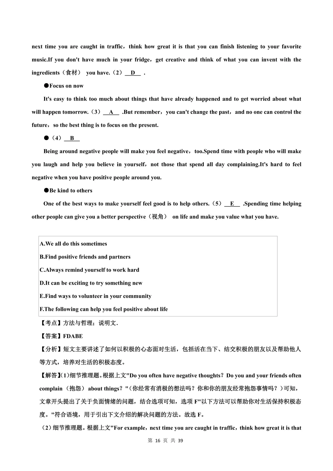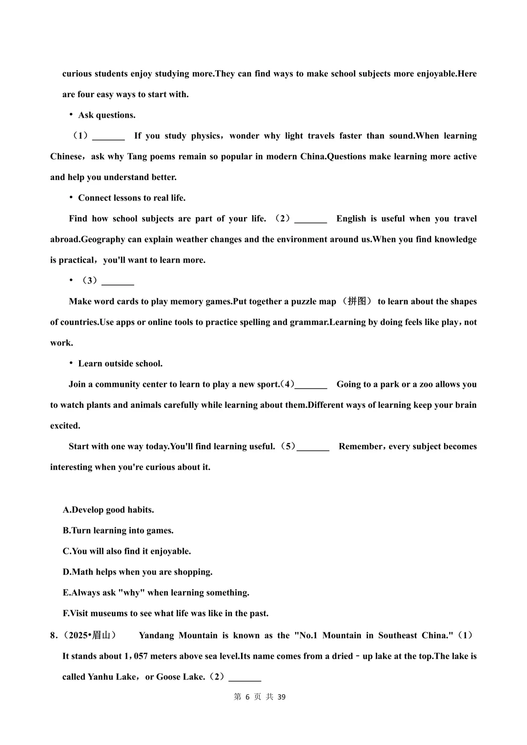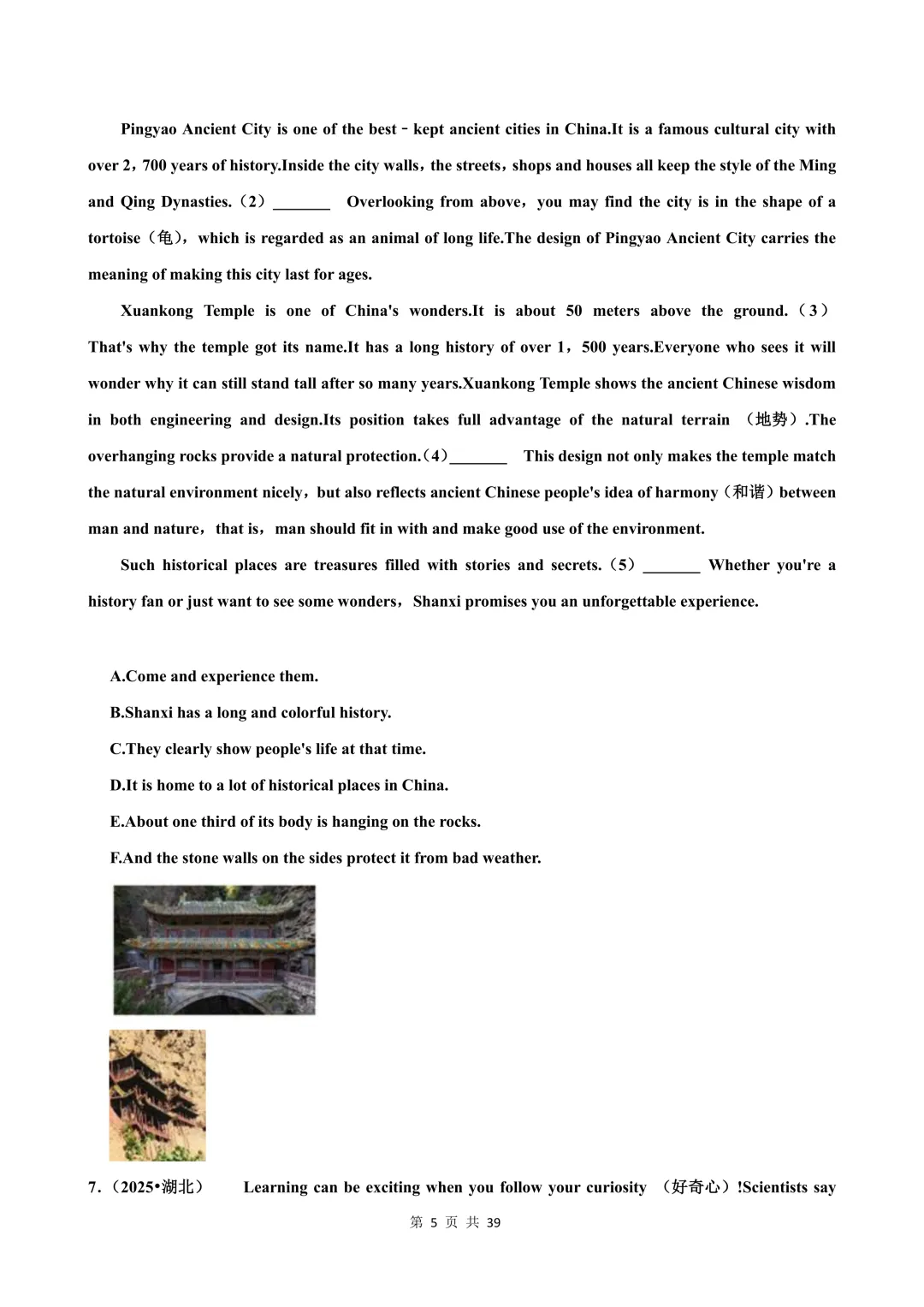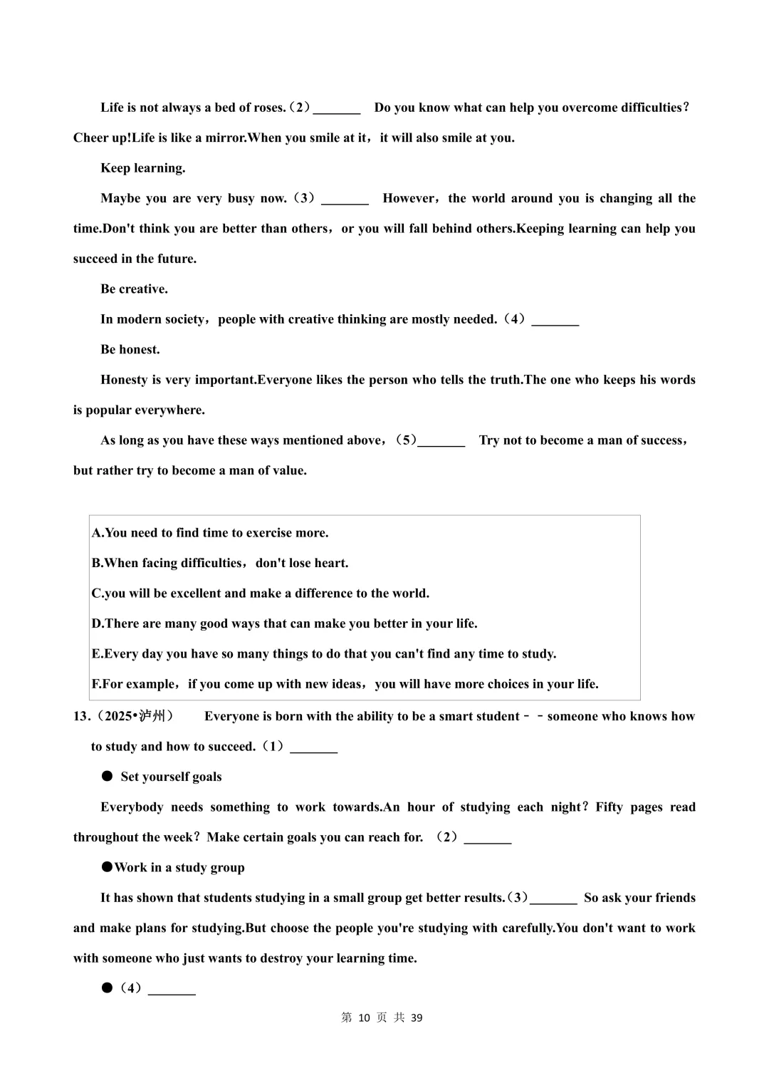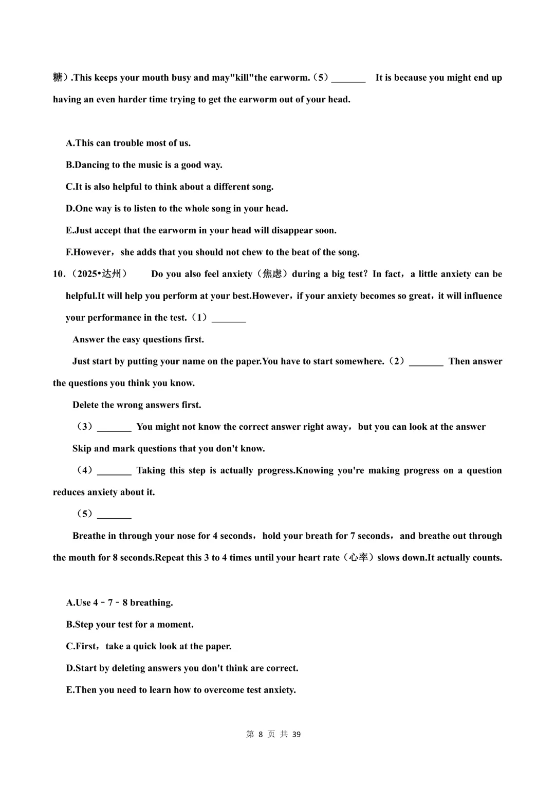【可打印】2026年中考英语一轮复习 短文6选5(含答案解析)