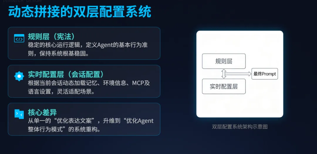 环境层(Dynamic Context): 根据当前的上下文,动态加载内存(Memory)、环境信息、MCP 协议、语言设置等。