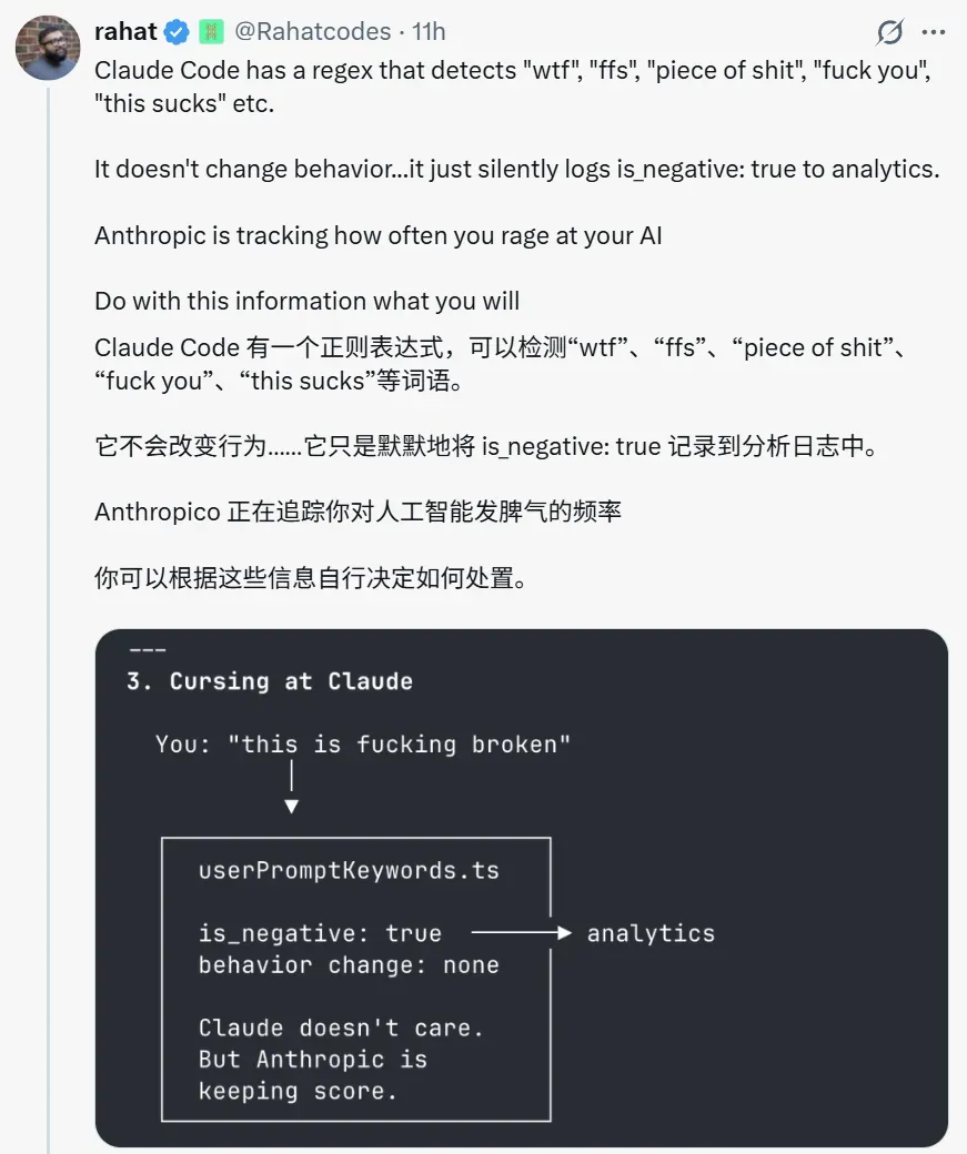 2:对 Claude Code 爆粗口,会被标记为负面输入