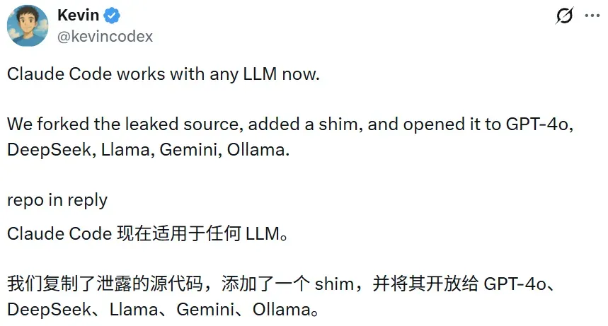 而 X 用户则添加了一个 shim,将 Claude Code 开放给了各种第三方模型和服务: