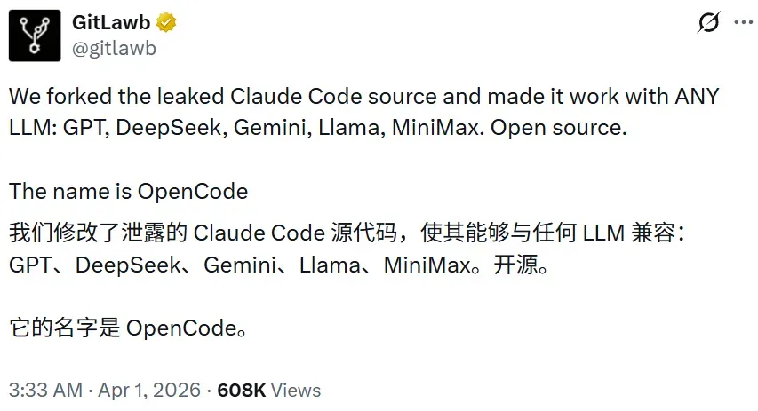 与此同时,OpenClaude、Free Code、claw-code 等不同名称的项目也正如雨后春笋般涌现。