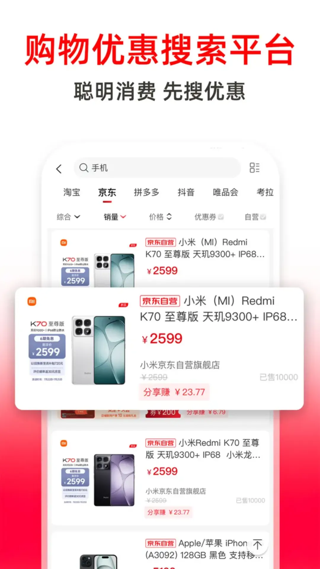 3、“消费+分享”双惠模式:不仅可以用隐藏优惠券购买优惠的产品,还可以一键分享QQ/微信/朋友圈/微博/空间等,图文并存,更简单更便捷