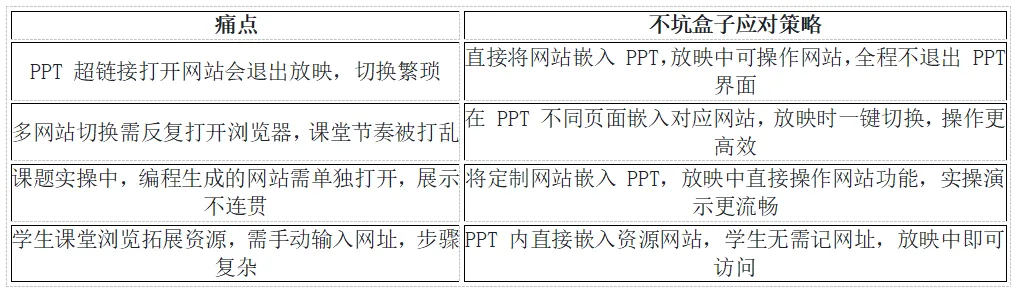 在 PPT 中标记需嵌入网站的页面,明确每个页面对应的网站用途,如知识点拓展、课题实操等。