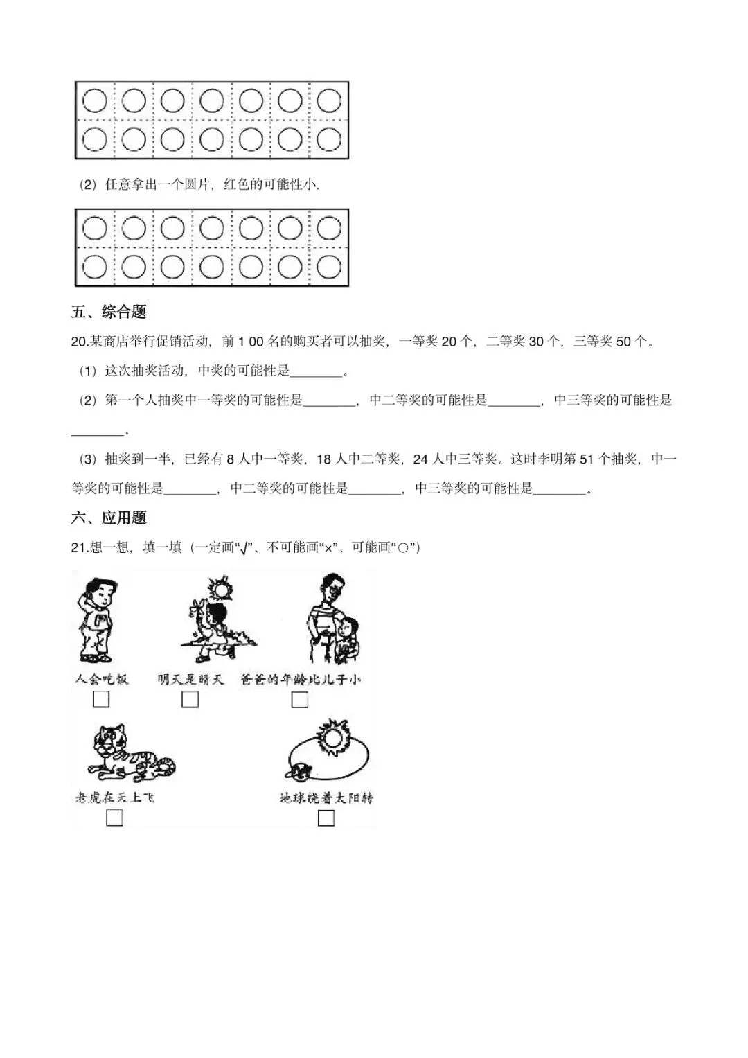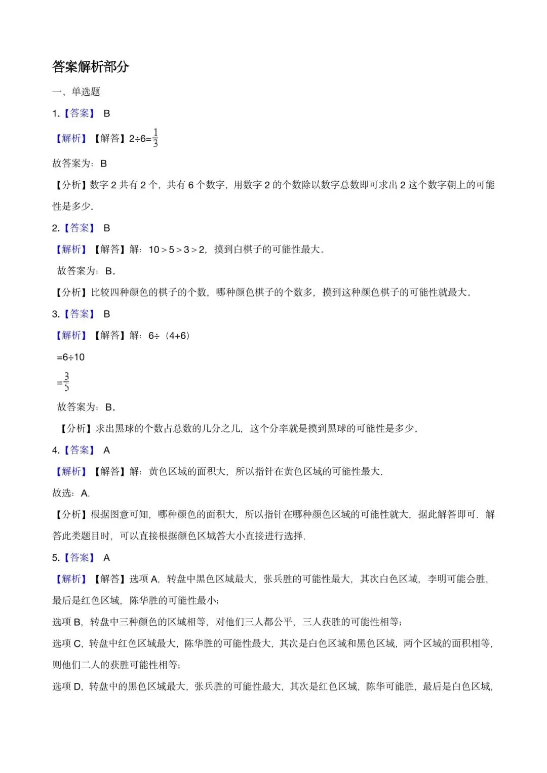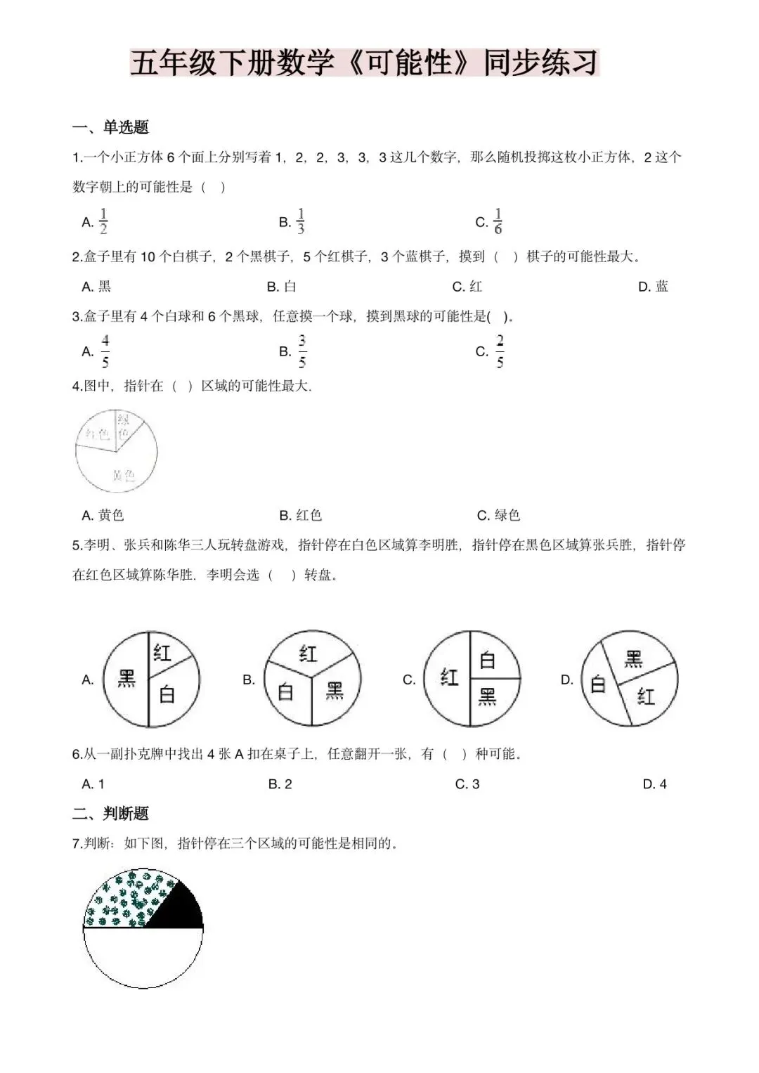 可下载丨26春五年级下册数学《可能性》同步练习,电子版可打印