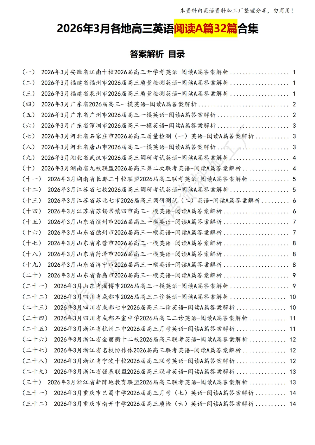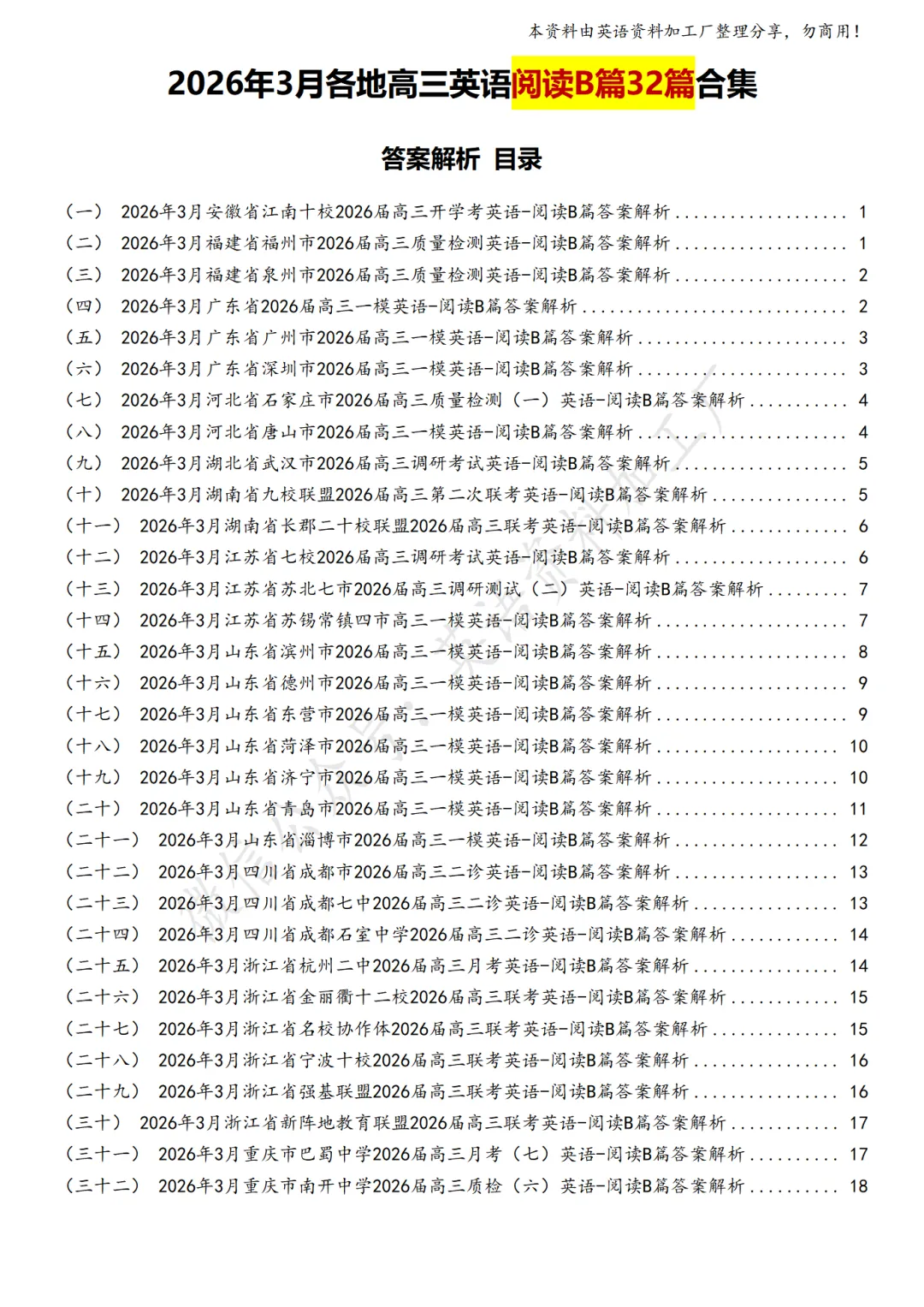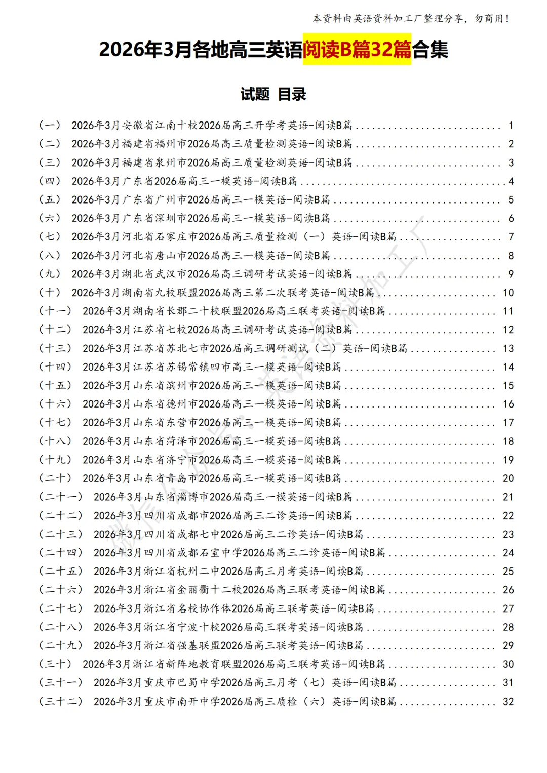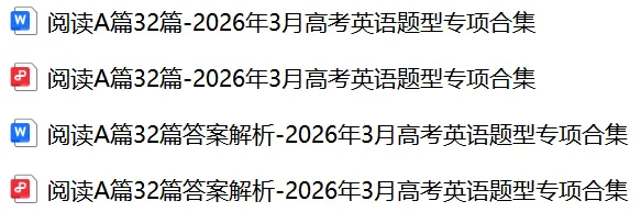 【阅读AB】免费下载!26年3月各地高三联考/模拟考英语阅读A篇、B篇各32篇合集,含答案解析
