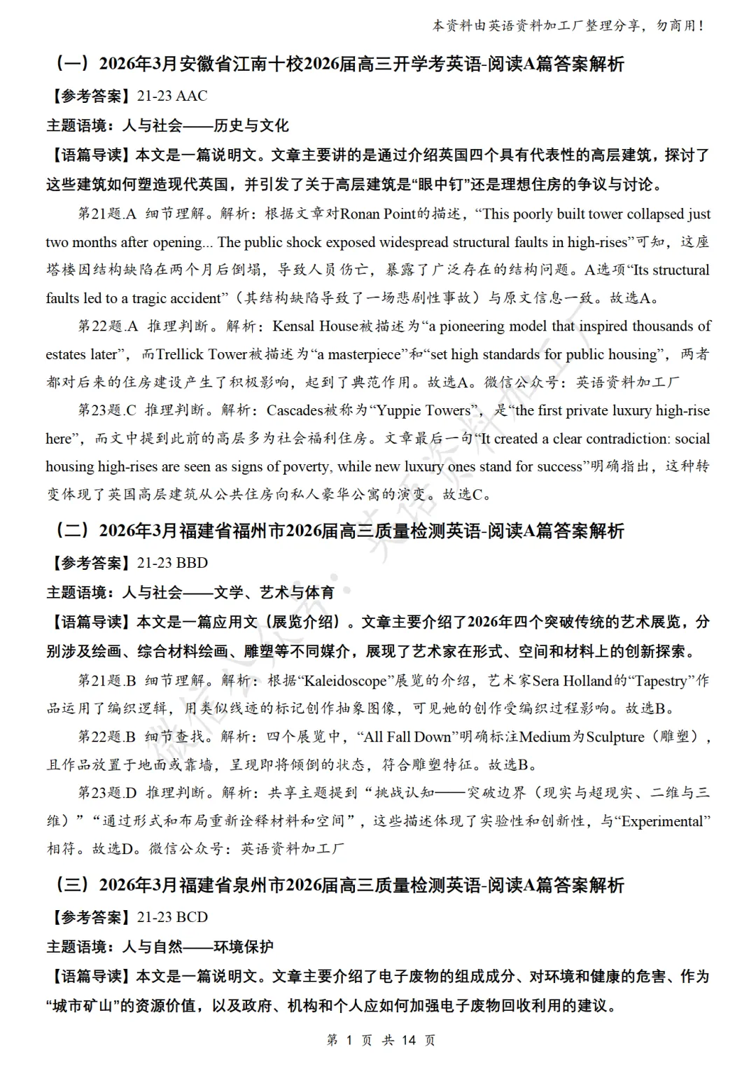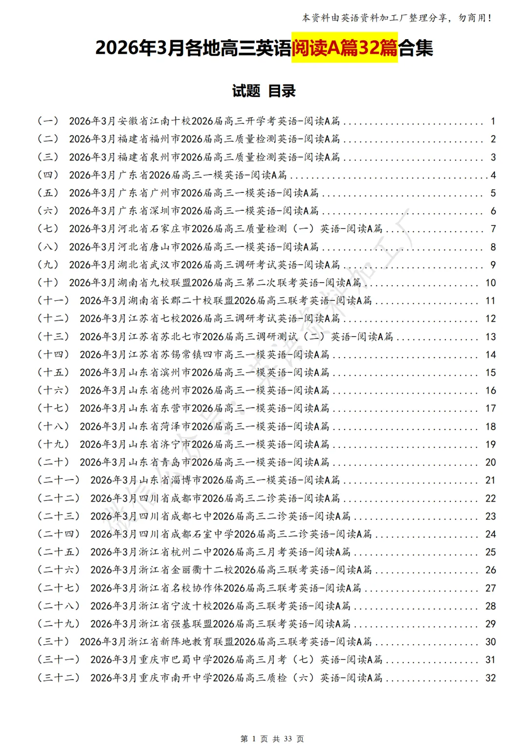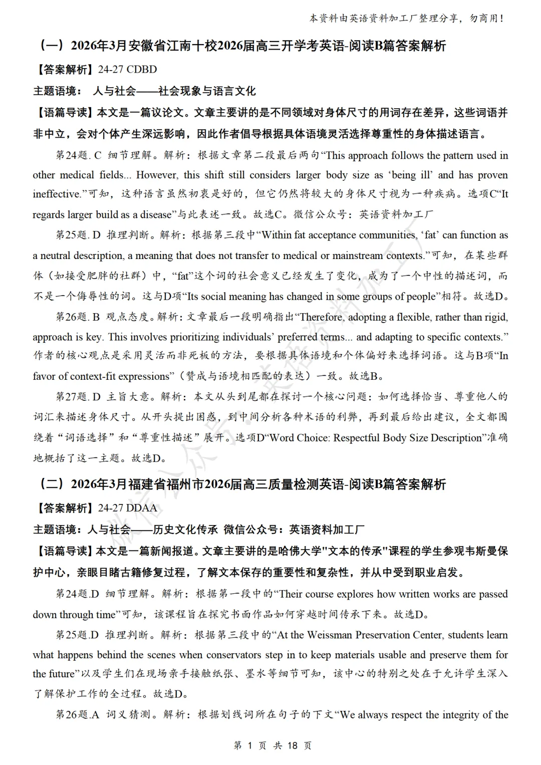【阅读AB】免费下载!26年3月各地高三联考/模拟考英语阅读A篇、B篇各32篇合集,含答案解析