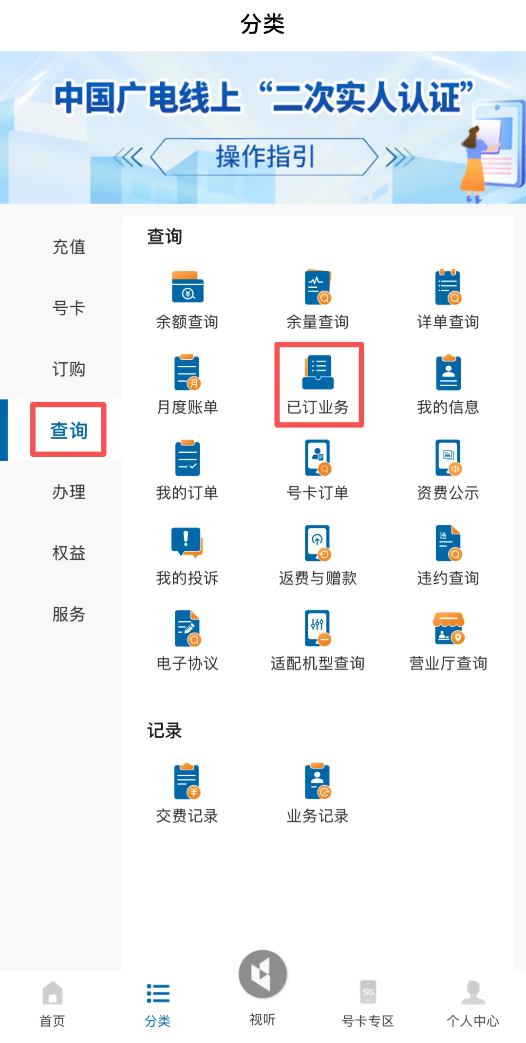 再点左侧的【查询】,直接选【已订业务】,就能进入查询页面,一眼就能找到,超省事!