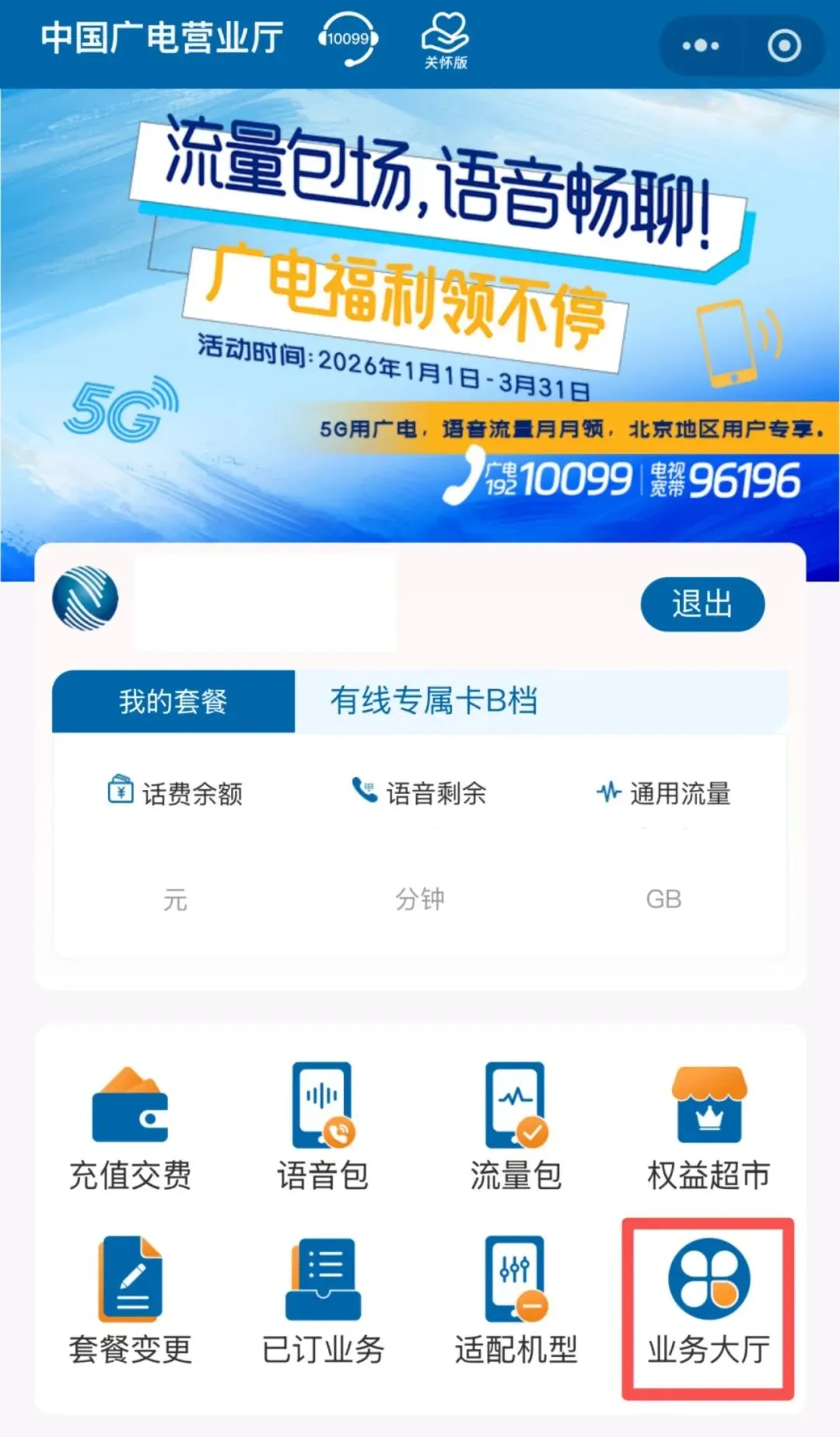 中国广电营业厅小程序也能查,从小程序首页的【业务大厅】进去,就能找到已订业务查询入口,操作和 APP 一模一样,简单好上手,临时查询超方便!