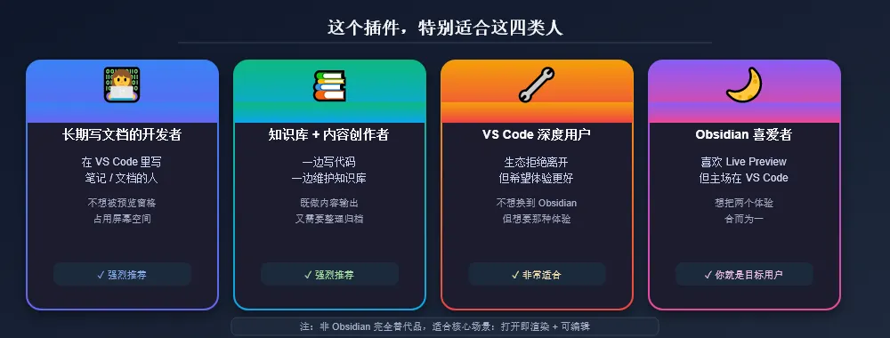 喜欢 Obsidian 的体验、但工作主场仍然在 VS Code 的人