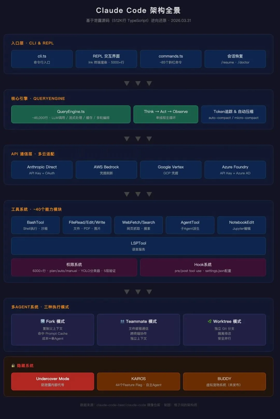 重点是这51万行代码,等于把目前最强AI编程工具的完整架构图纸摊在了所有人面前。多Agent怎么调度、权限怎么控制、prompt cache怎么复用、工具链怎么编排——这些东西以前你只能猜,现在全看到了。