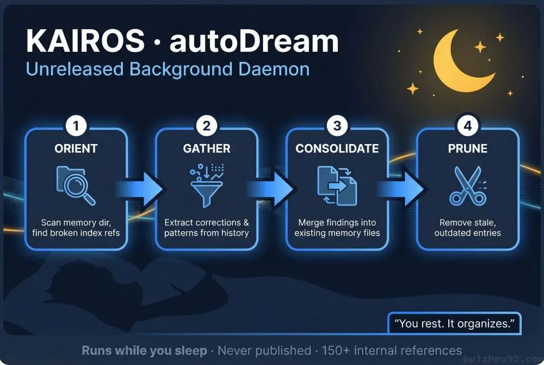 子系统autoDream负责记忆整理,四个阶段: