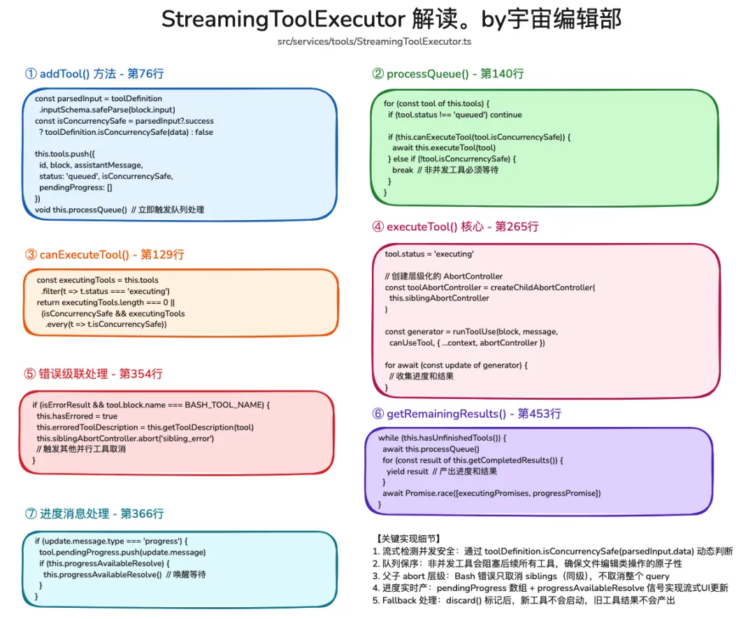这次读源码,让我兴奋的是几个设计非常巧妙的工程细节:比如 src/query.ts 里有一个叫 StreamingToolExecutor 的类,读到它的时候我眼睛一亮。