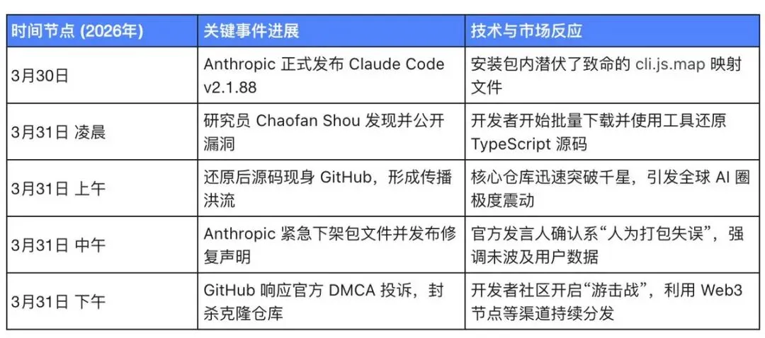 (表 1:Claude Code v2.1.88 源码泄露事件时间线与关键节点复盘)