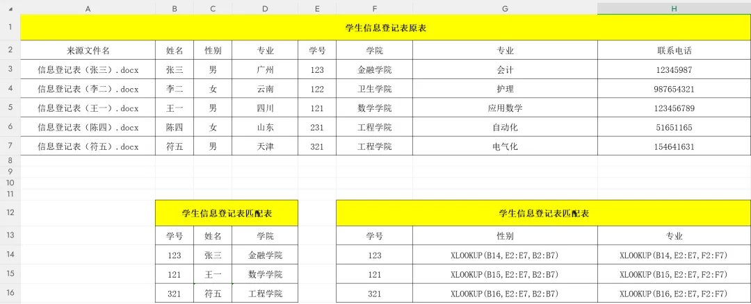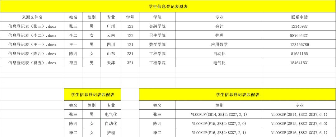 实战演练:【姓名】找【性别】和【专业】