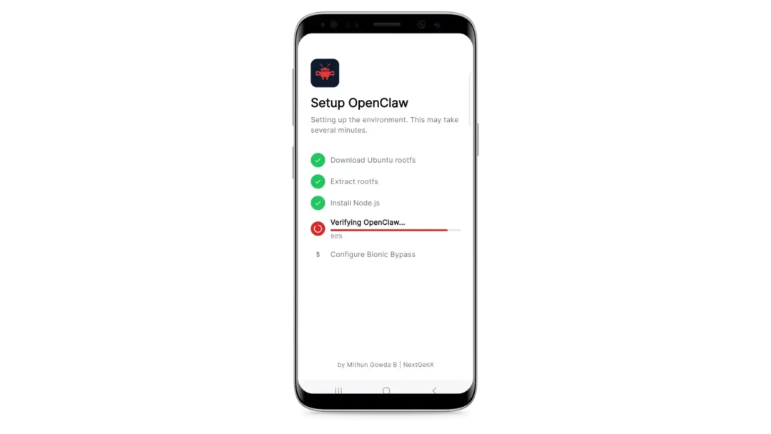 它的实现原理其实也很有意思。OpenClaw 并不是直接跑在安卓系统上,而是通过 Proot 在手机里虚拟出一个 Ubuntu 系统,然后在这个环境中安装 NodeJS 和 OpenClaw 主程序,同时提供一个图形化界面进行管理。最重要的一点是:整个过程不需要 Root 权限,这让它的可用性大大提升。