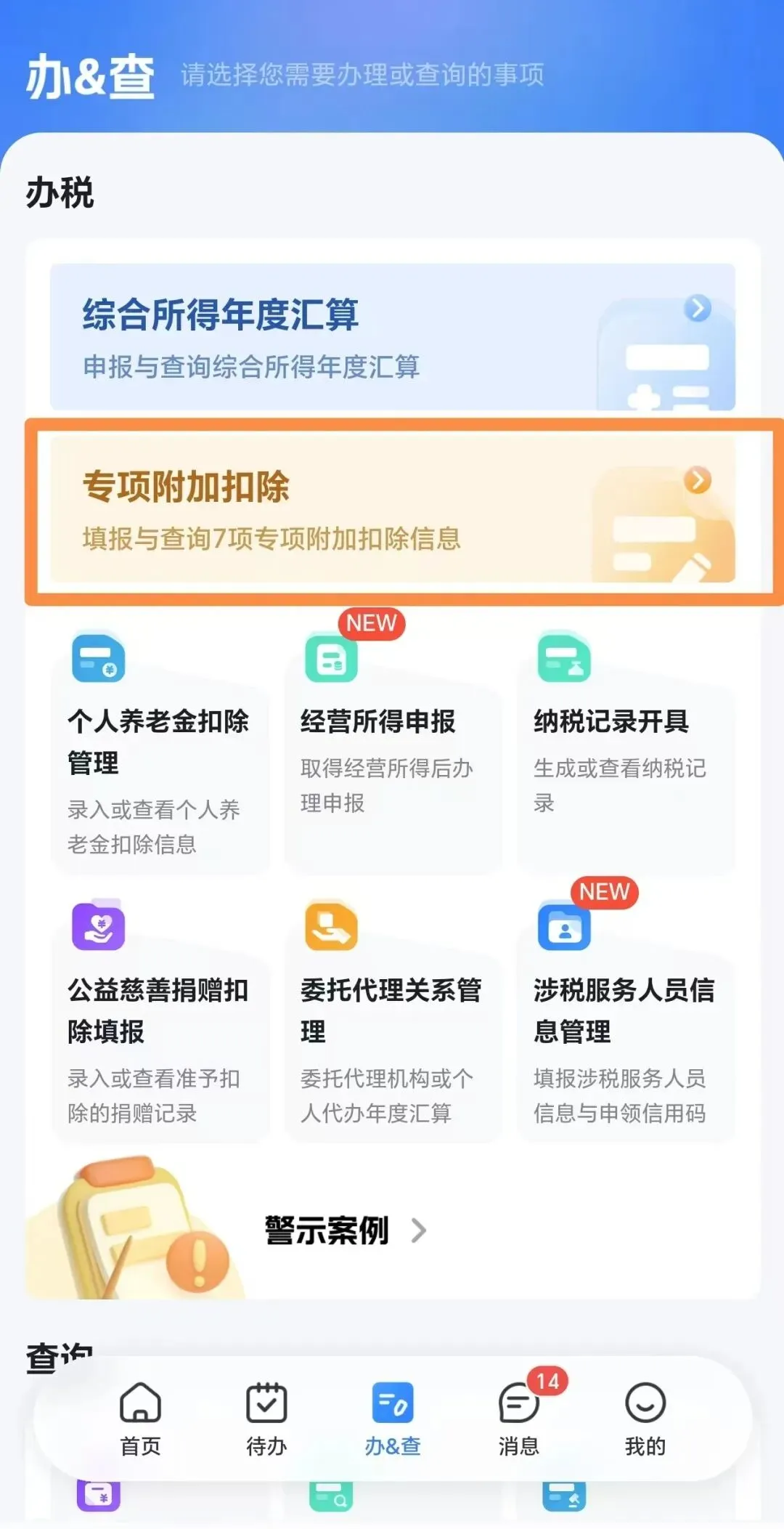 若2026年度的贷款合同编号填写无误,建议依次检查以往年度已采集的住房贷款利息专项附加扣除信息,查询步骤:点击“办&查”→点击“专项附加扣除”→选择查询年度→进入填报详情查看信息。