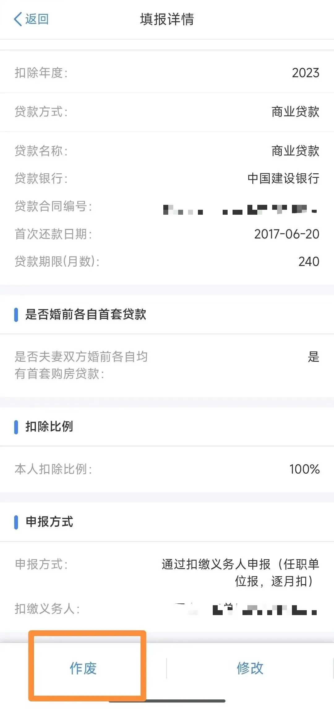 若以往存在多个年度的贷款合同编号填写错误,需作废所有错误年度的住房贷款利息专项附加扣除信息并重新填报。