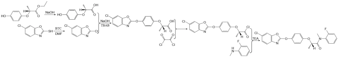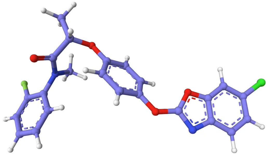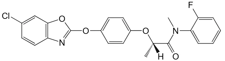 化学名称:(R)-2-{(4-氯-1,3-苯并恶唑-2-基氧)苯氧基}-2′-氟-N-甲基丙酰替苯胺