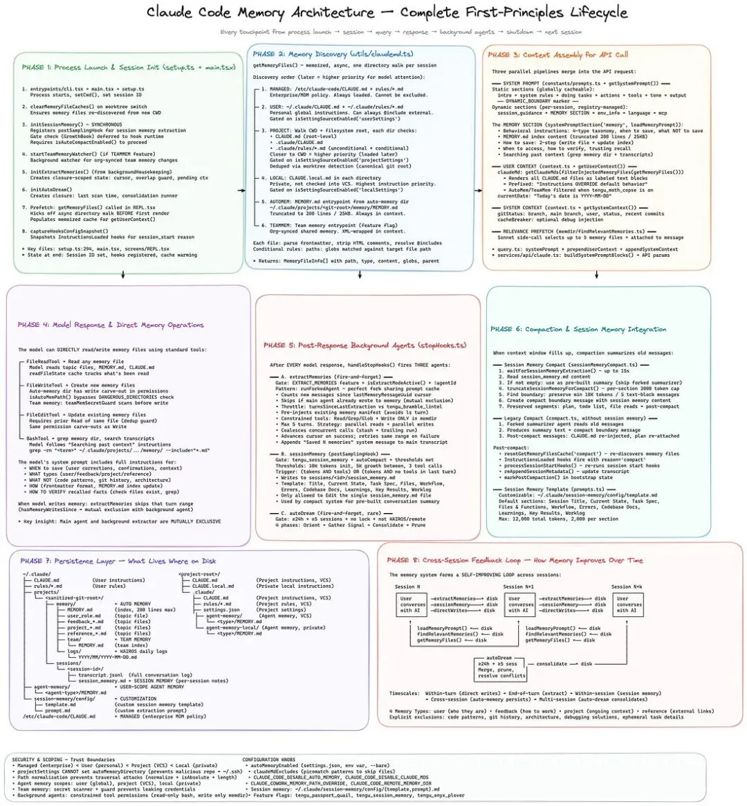 泄露的代码展示了 Anthropic 为 Claude Code 设计的精密内存系统。不同于普通的 RAG(检索增强生成),它采用了类似于操作系统层级的结构: