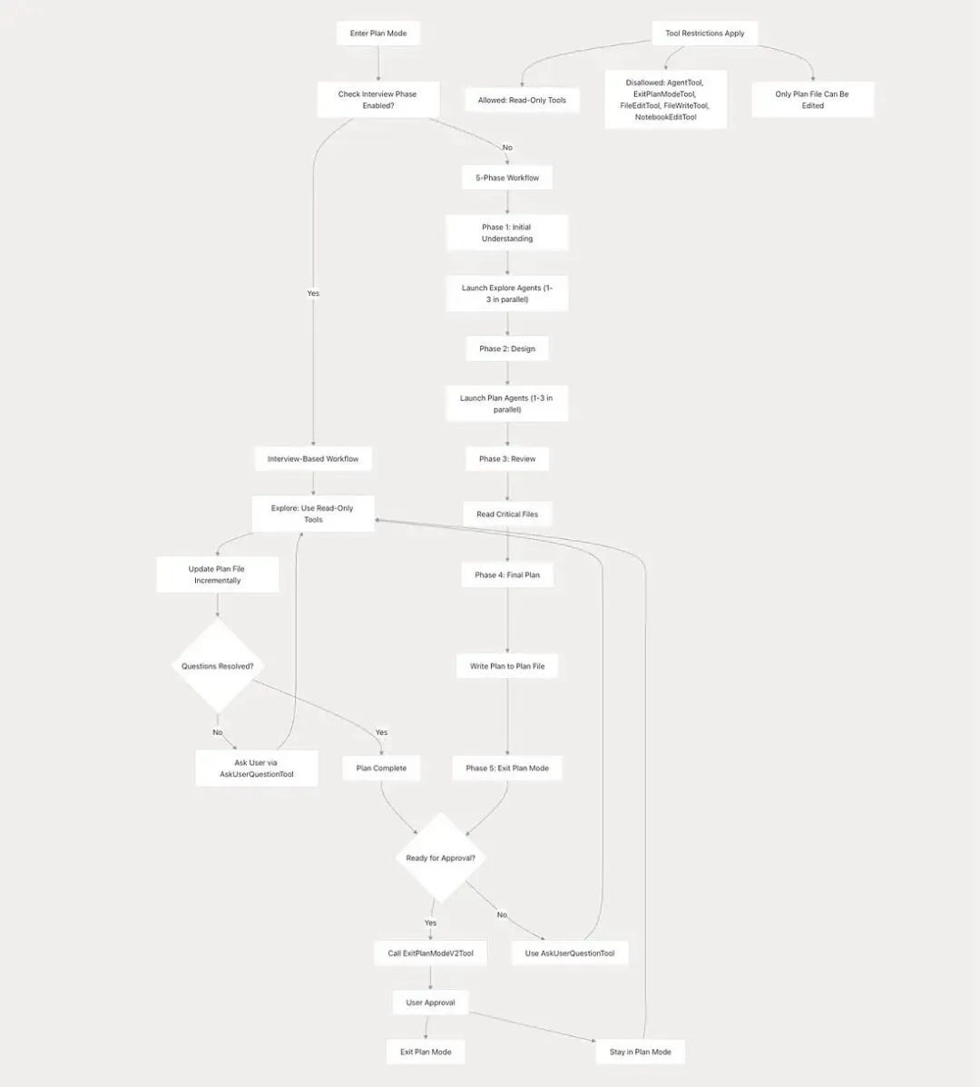 源码中曝光了超过 60 种内置工具,默认启用的近 20 种包括:BashTool、FileEditTool、NotebookEditTool、WebFetchTool 等。为了确保安全性,Anthropic 设计了五层权限验证系统,从只读模式到全自动执行,每一层都设有严格的边界。这证明了在生产环境中,Agent 的安全性不仅靠提示词(Prompting),更靠严密的系统级硬编码过滤。