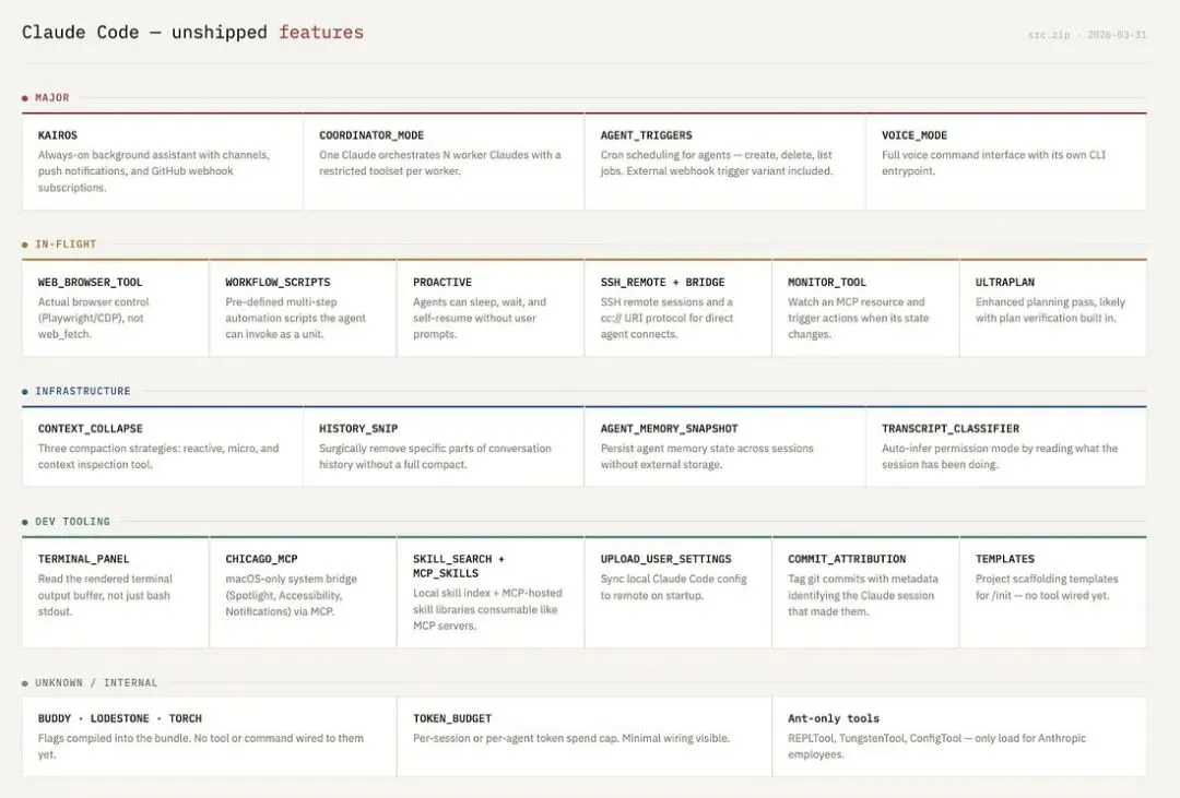 除了严肃的技术架构,源码中还隐藏了许多极具前瞻性的实验功能,预示了 Anthropic 未来的产品方向: