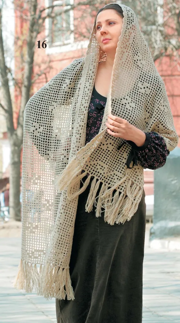 边缘编织与装饰: 披肩的长边按照边缘编织图解进行钩边。