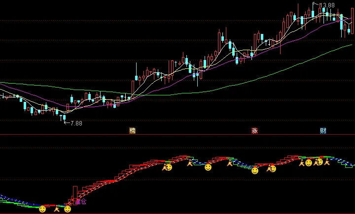 但光看KDJ还不够,它有时会过于敏感。所以,指标引入了更核心的第二层逻辑——”运钞专列“和”和谐一号“。