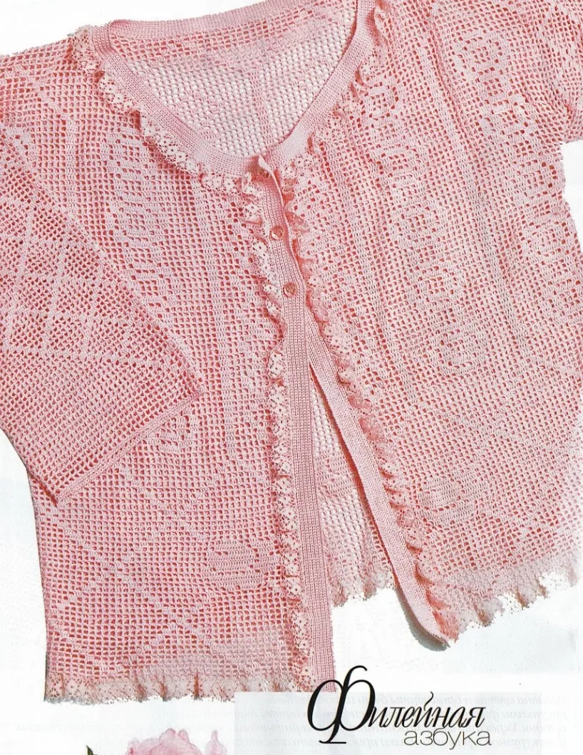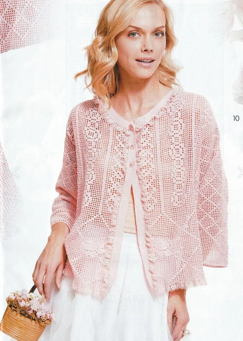 桃粉色钩针蕾丝开衫图解+钩织说明