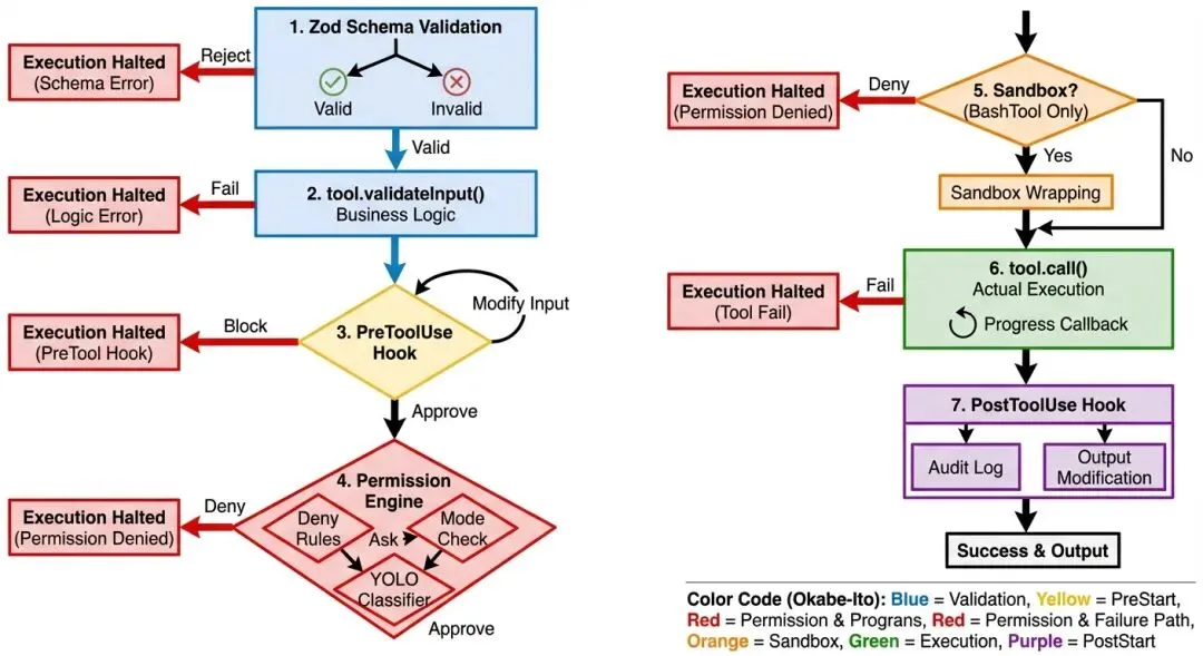 • 论文提出五层(Prompt → Schema → Runtime Approval → Tool Validation → Lifecycle Hooks) -