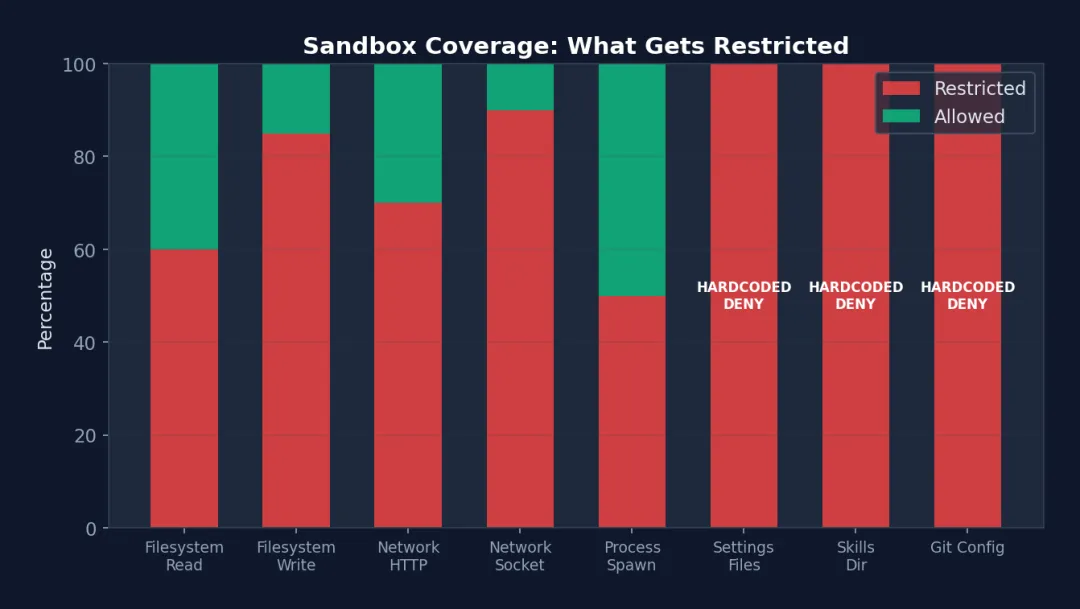 • Claude Code 增加了第六层:硬编码拒绝(不可配置、不可绕过) -