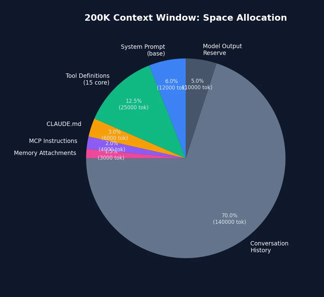 • Claude Code 的四级压缩管道、工具延迟加载、记忆预取全部服务于此