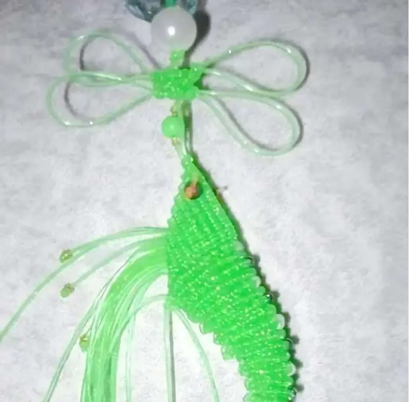 这个绿闪闪的东西叫玻璃丝大虾挂件,其实就是塑料丝线一根一根编出来的装饰品,啥钥匙圈、拉链头、背包链都能见着,八九十年代特别流行,彩色的塑料丝一卷一卷,家里大人有空手巧活多,边看电视边扎几只虾,串点小珠子更显喜庆,小姑娘好几个攀比谁的虾编得花哨,平价材料能玩出心思,物质拮据靠双手折腾点乐趣,现在这些虾成了怀旧摆设,偶尔看到也会想起那会儿的手艺。