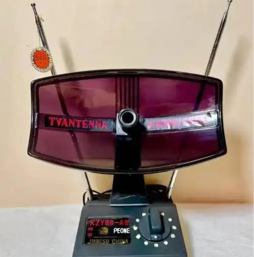 这东西正面两个天线一分叉,全黑底座,玻璃面板发紫带字,叫的就是老式电视天线,那时候一句**“甭动别动,信号刚好!”**家里都能听着,现在的年轻人很多都没见过,家里电视要能收清楚台,全都靠它前后的摆弄,爸在一边调,妈站沙发旁盯着,画面糊了就急,“往左点,再往右点”,小孩边看动画边帮着扭,哪天信号好了是全家高兴的事,后来有线电视逐渐普及,这种天线退下桌面进了杂物箱,现在拿出来怕还有人以为是外星科技。
