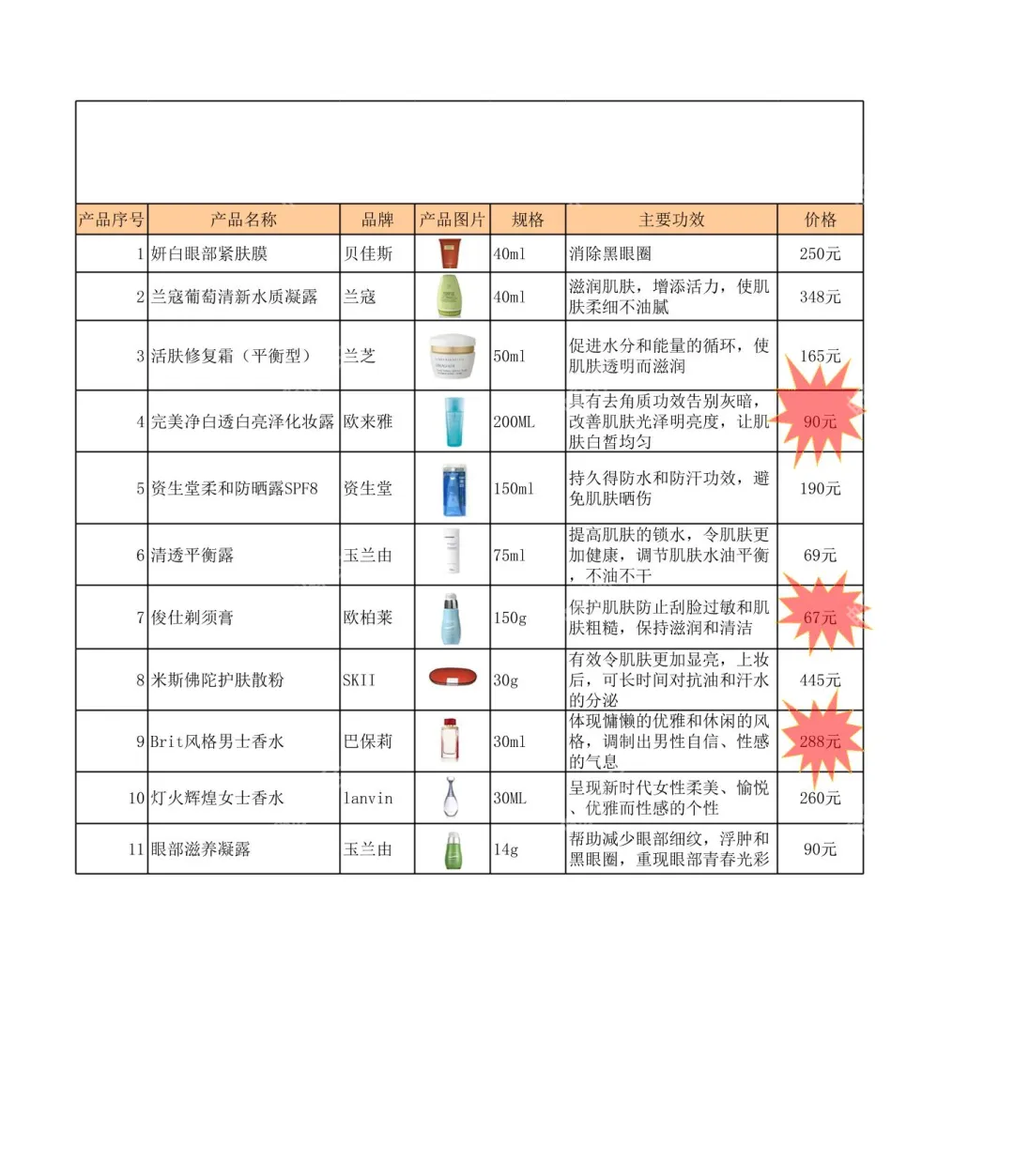 本文档是一份美妆护肤及香水类产品的汇总清单,为消费者提供产品的核心信息参考。文档涵盖了贝佳斯、兰蔻、资生堂等多个知名品牌的11款产品,详细列出了每款产品的规格、主要功效及售价,包含眼部护理、面部护肤、男士剃须用品、男女香水等多个品类。无论是想要改善肌肤问题的护肤需求者,还是挑选香氛的时尚爱好者,都能通过这份清单快速了解产品核心卖点,对比选择适合自己的美妆好物。